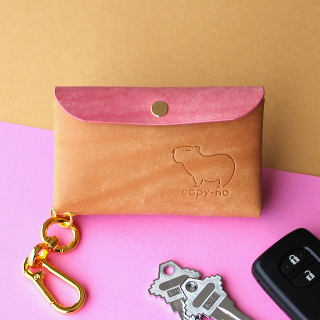 あわただしい朝の準備。 玄関前でサッと手にとれる、カピバラスマートキーケースです。 春を感じるピンクと優しい雰囲気のブラウンを組み合わせてお作りしました。 手にとってボタンを開ける時にカピバラがちらっと見えるのも魅力の一つ。 スマートキーを取り出すときは「ぐったりカピバラ」 家のカギを取り出すときは「のんびりカピバラ」 穏やかな表情を見ていると、忙しい毎日にホッとする余白が生まれます。 大事なカギは、4連フックとチェーンでしっかりホールド。 スマートキー1個+鍵4本収納可能。 毎日使うカギをまとめて持ち歩きたい方にぴったり! 使ってくれた方からいただいた、嬉しい声を一部ご紹介します。 ●とにかくカピバラが可愛い ●スマートキーと他のカギを一緒に収納できて便利 ●本革ならではの素材感がよく、これから色の深みが出てくるのが楽しみ こちらのアイテムは ✔独特の風合いと経年変化が魅力的なイタリアンレザー ✔革の魅力を引き立てるイタリアPRYM社製のホック使用 ひとつひとつ手縫いで仕立てており、革小物として長くお使いいただけるアイテムです。 シンプルなデザインだからこそ、 自分用はもちろんのこと、ギフトとしても選ばれています。 ※注意※ お急ぎ対応ページのため、「カラーカスタマイズ」「名入れ刻印」「左利き対応」ができません。 ご希望の方はこちらからのご注文をお願いいたします。 https://capyno.official.ec/items/117124048 ■サイズ■ 縦6.5cm、横10cm、厚さ3cm程度 コンパクトさと実用性のどちらも感じられるよう、小さめサイズでお作りしております。 ■使用している革について■ マヤ まだら模様に銀スリ加工を施したスクラッチレザーで、独特な風合いをお楽しみいただけます。 とても経年変化の強く、使いこむうちにマットな雰囲気から艶のある雰囲気になります。