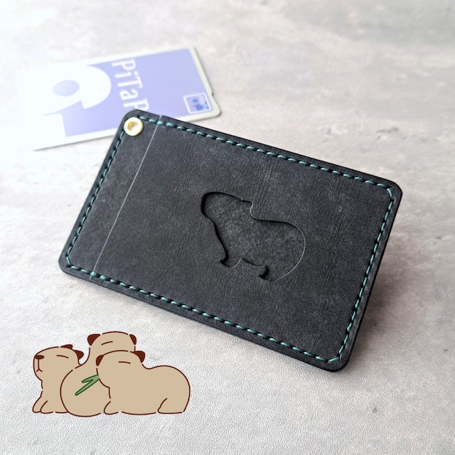 小窓のカピバラがかわいい!シンプルなレザーパスケース【イベント展示カラー】ブラック×ブルー