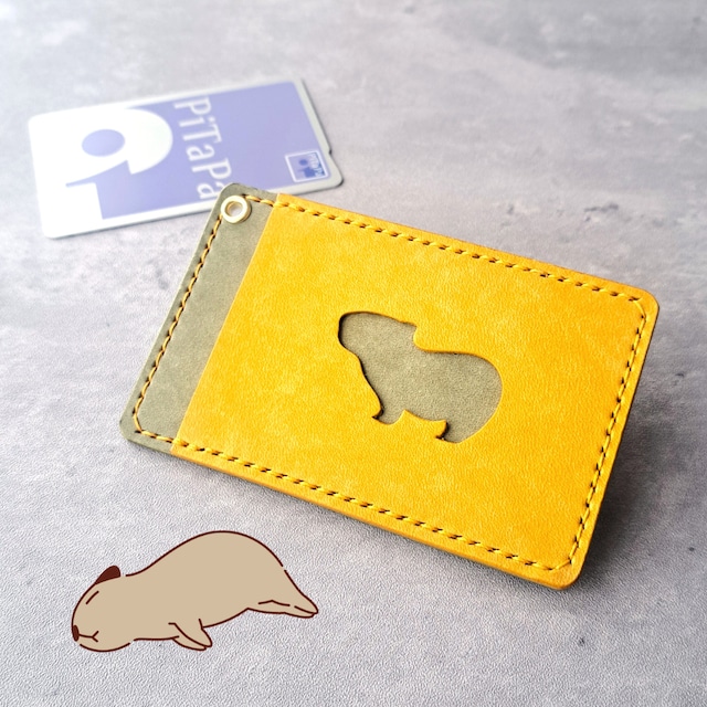 小窓のカピバラがかわいい!シンプルなレザーパスケース【イベント展示カラー】イエロー×グリーン