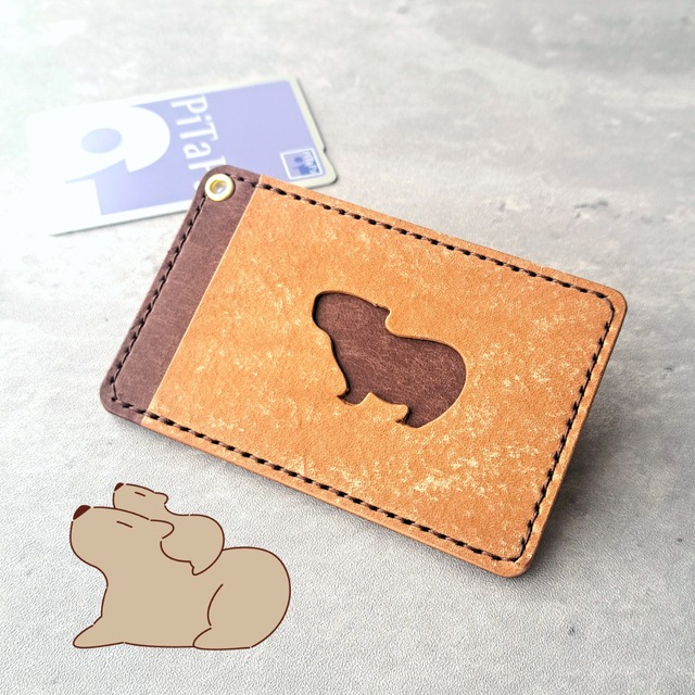 11月15日・16日のデザインフェスタ出展に向けていろんなカラー・カピバラ刻印でお作りしました✨ 12月5日までオンラインでも販売中! バリエーションはこちらからご確認いただけます。 →https://capyno.official.ec/categories/6999541 パスケースの小窓がカピバラになったらどうかな? そんな軽い気持ちで作り始めて早3年。 ずっと作り続けているCapy-noの定番アイテムです。 交通系ICカード一枚用のシンプルなデザインだからこそ、カピバラのかわいさを存分にお楽しみいただけます。 パスケースだけじゃカピバラが足りない...という方は 足跡を刻印したリールストラップや、小窓と同じサイズのカピバラチャームをセットにして、カピバラ尽くしにカスタマイズしてみてくださいね! ■サイズ■ 縦7cm、横11cm、厚さ4mm~5mm程度 ■使用している革について■ マヤ まだら模様に銀スリ加工を施したスクラッチレザーで、独特な風合いをお楽しみいただけます。 とても経年変化の強く、使いこむうちにマットな雰囲気から艶のある雰囲気になります。