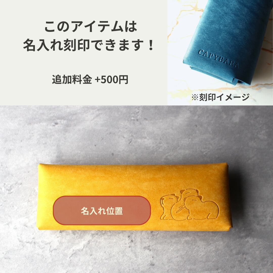 閉じている時はシンプルな革製のペンケースに見えますが、いざボタンを開けるとのほほ~んとしたカピバラに会えるようにデザインしています。