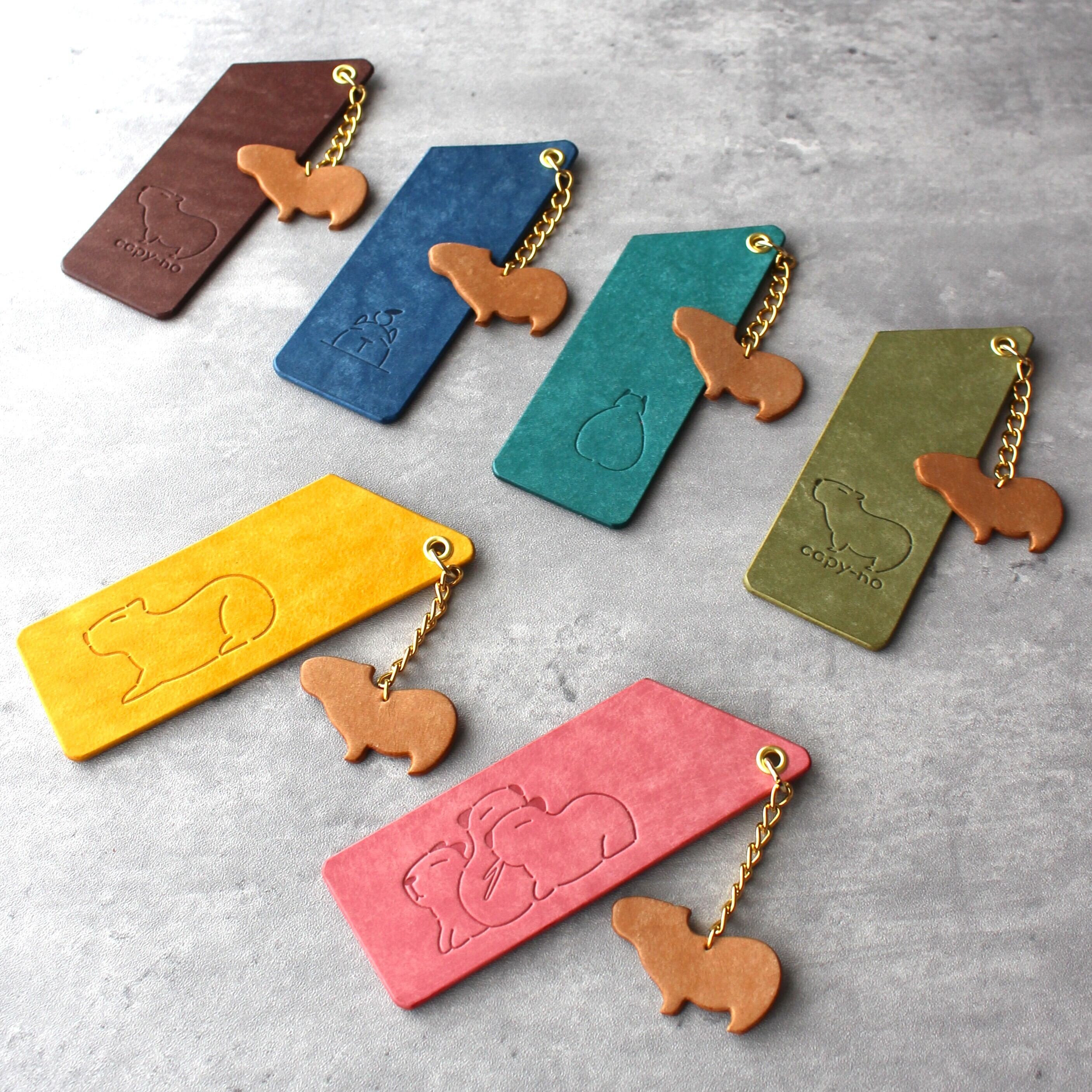 お気に入りの本と過ごすひとときに、ちょこんと寄り添うカピバラのしおりです。