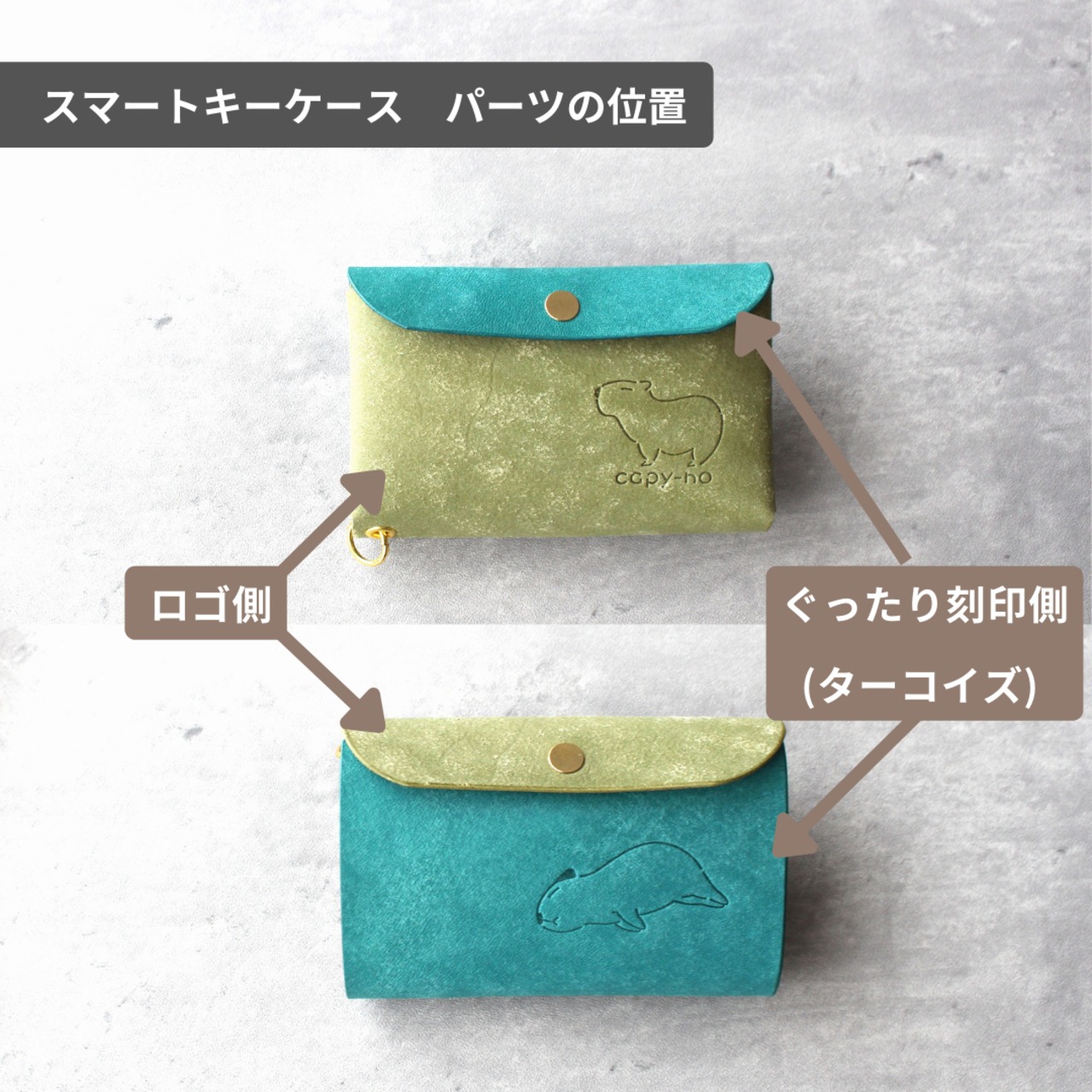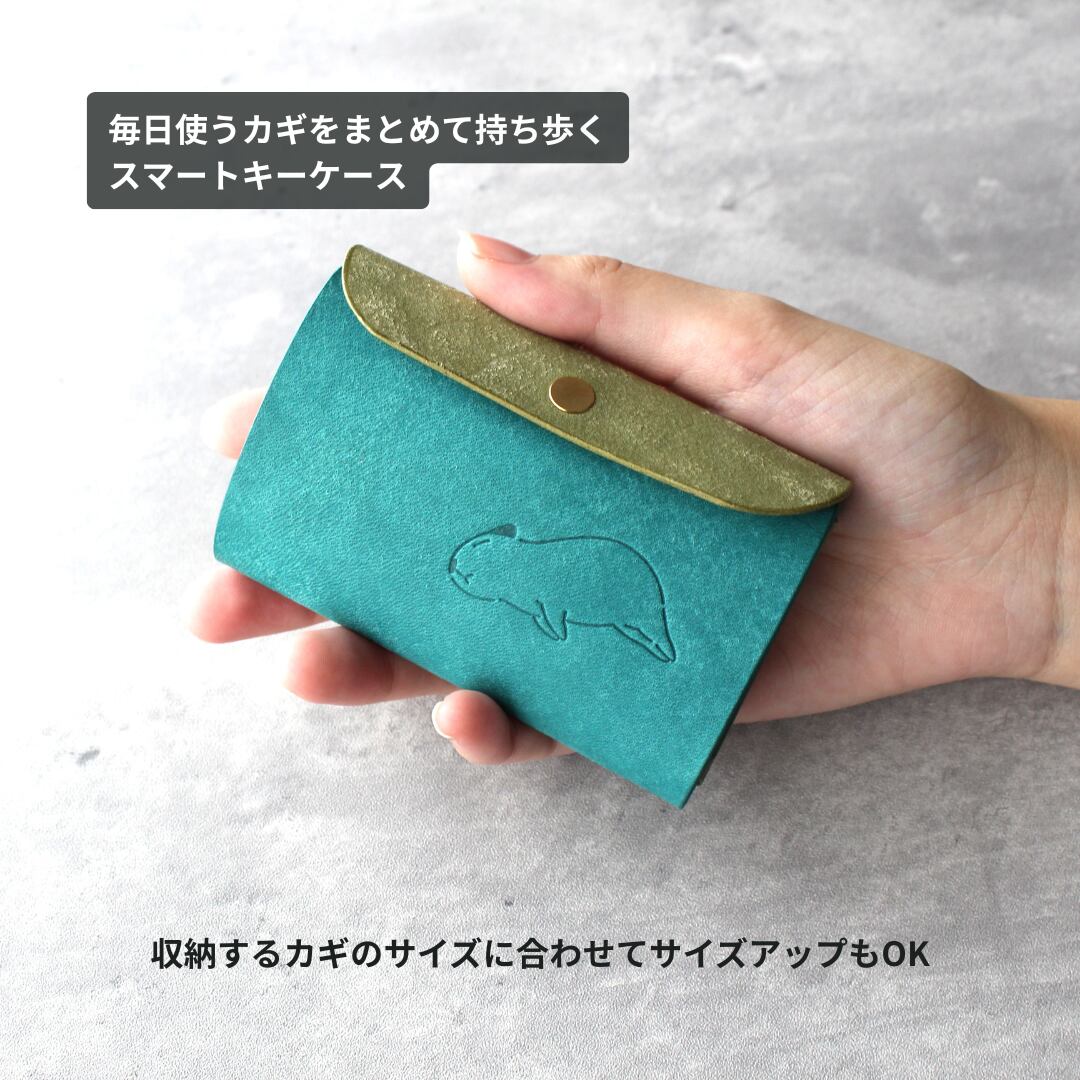 上質なイタリアンレザーで仕立てたシンプルなデザインに、さりげないカピバラデザインで