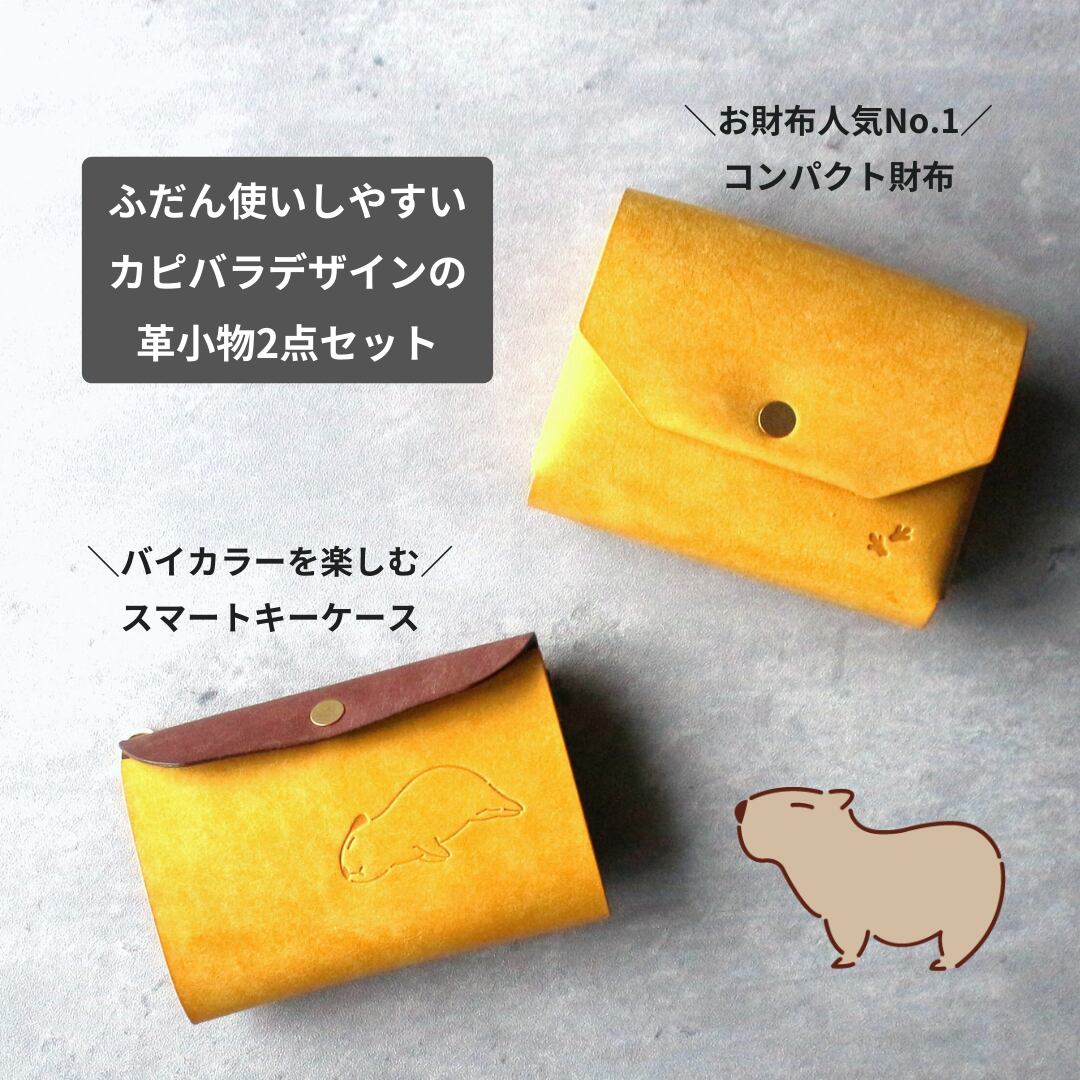 上質なイタリアンレザーで仕立てたシンプルなデザインに、さりげないカピバラデザインで