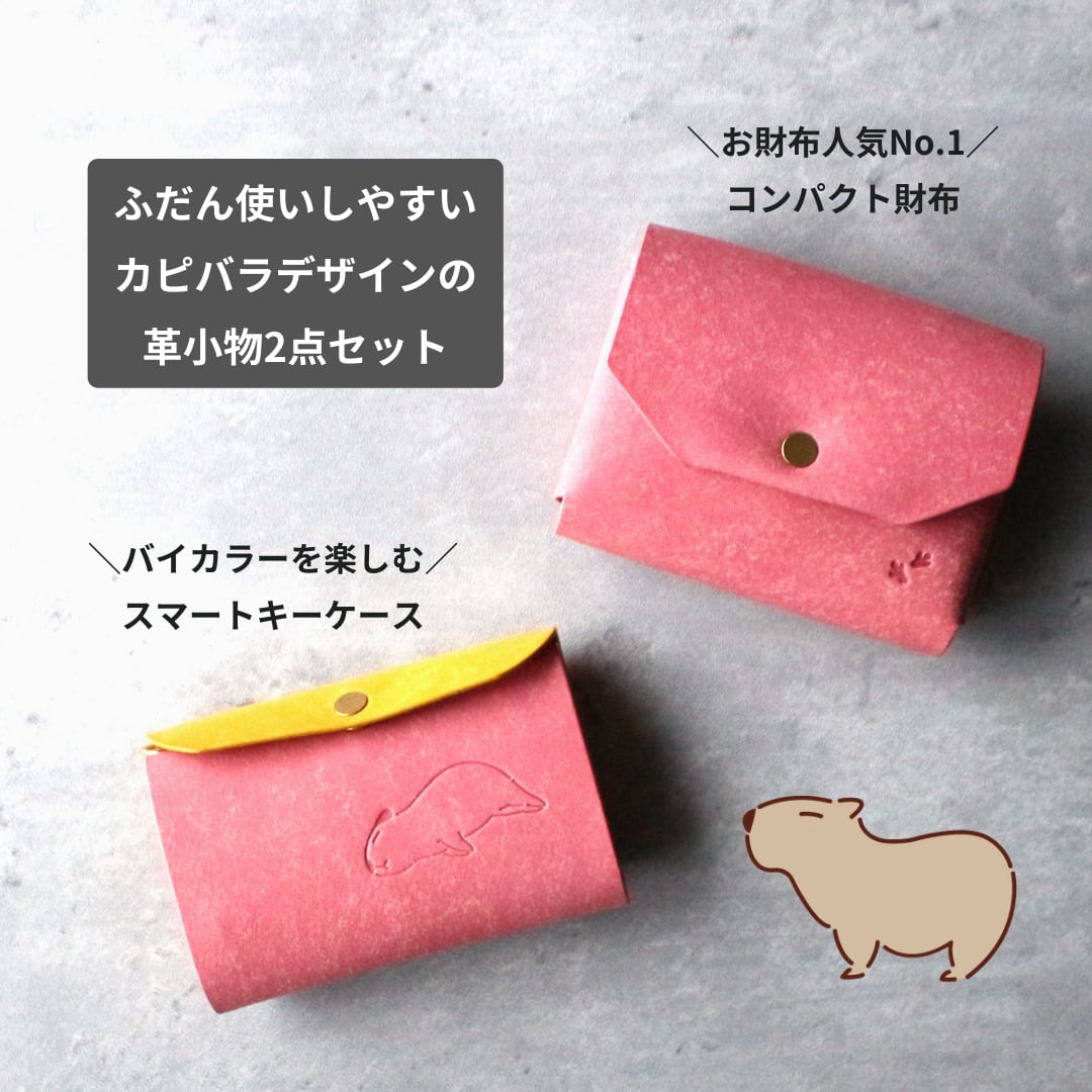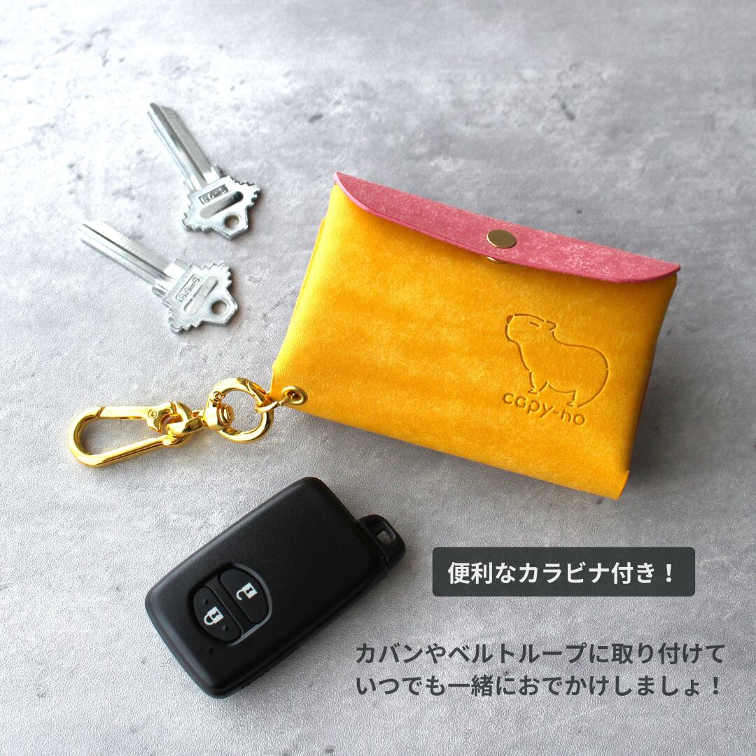上質なイタリアンレザーで仕立てたシンプルなデザインに、さりげないカピバラデザインで