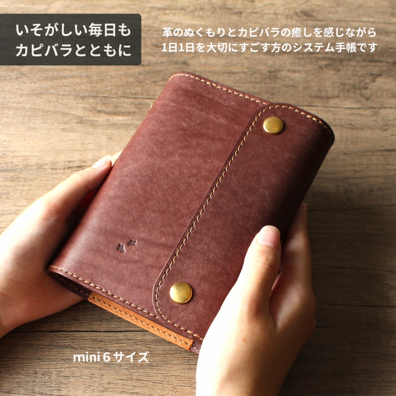「本革ならではの温かみのある手触り」と「のほほんとしたカピバラのかわいさ」を感じられるシステム手帳。