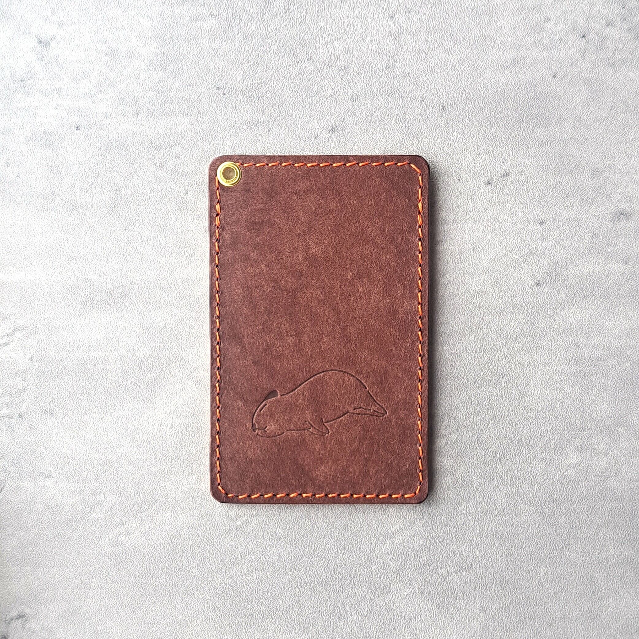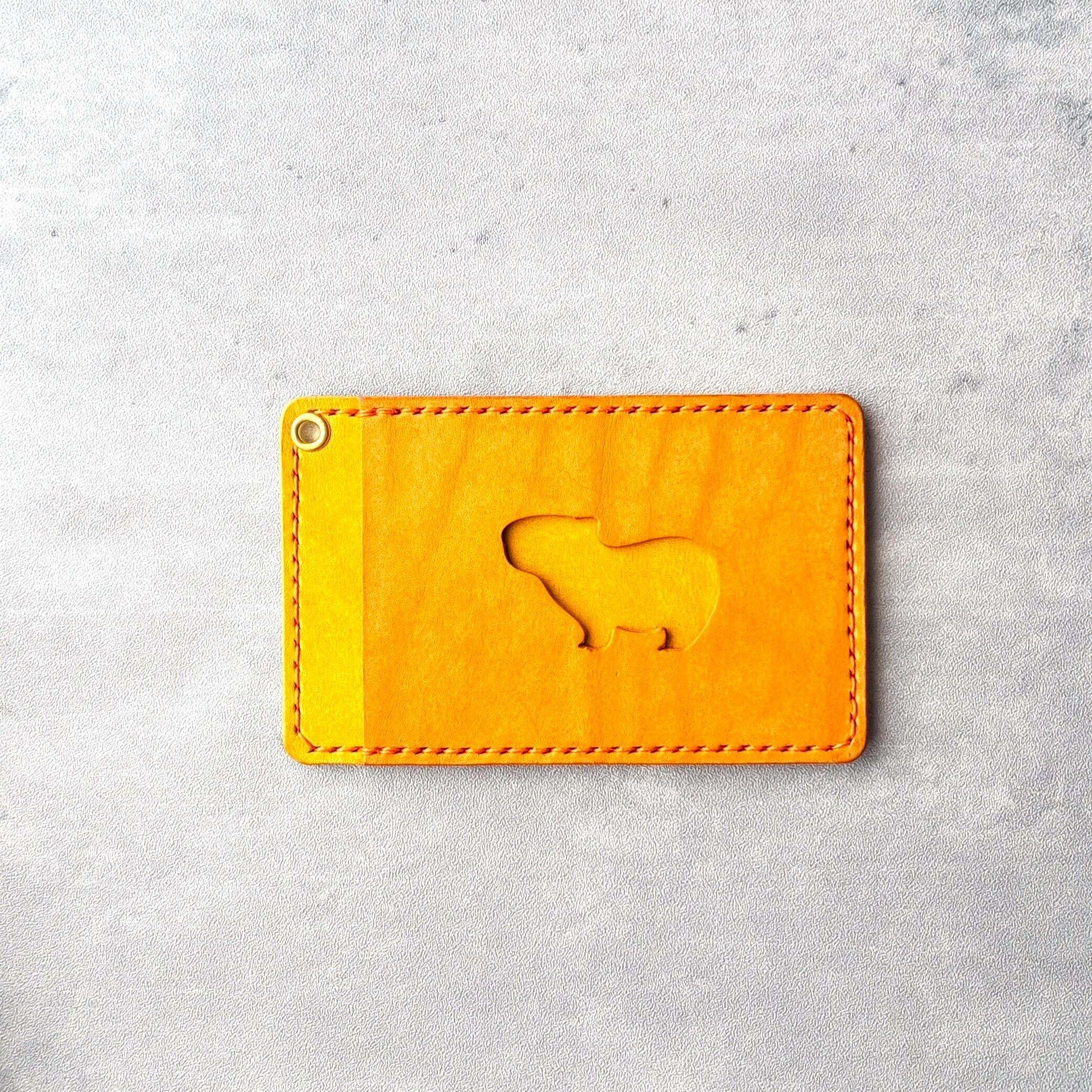 小窓のカピバラがかわいい!シンプルなレザーパスケース【イベント展示カラー】オレンジ×イエロー×ダークブラウン