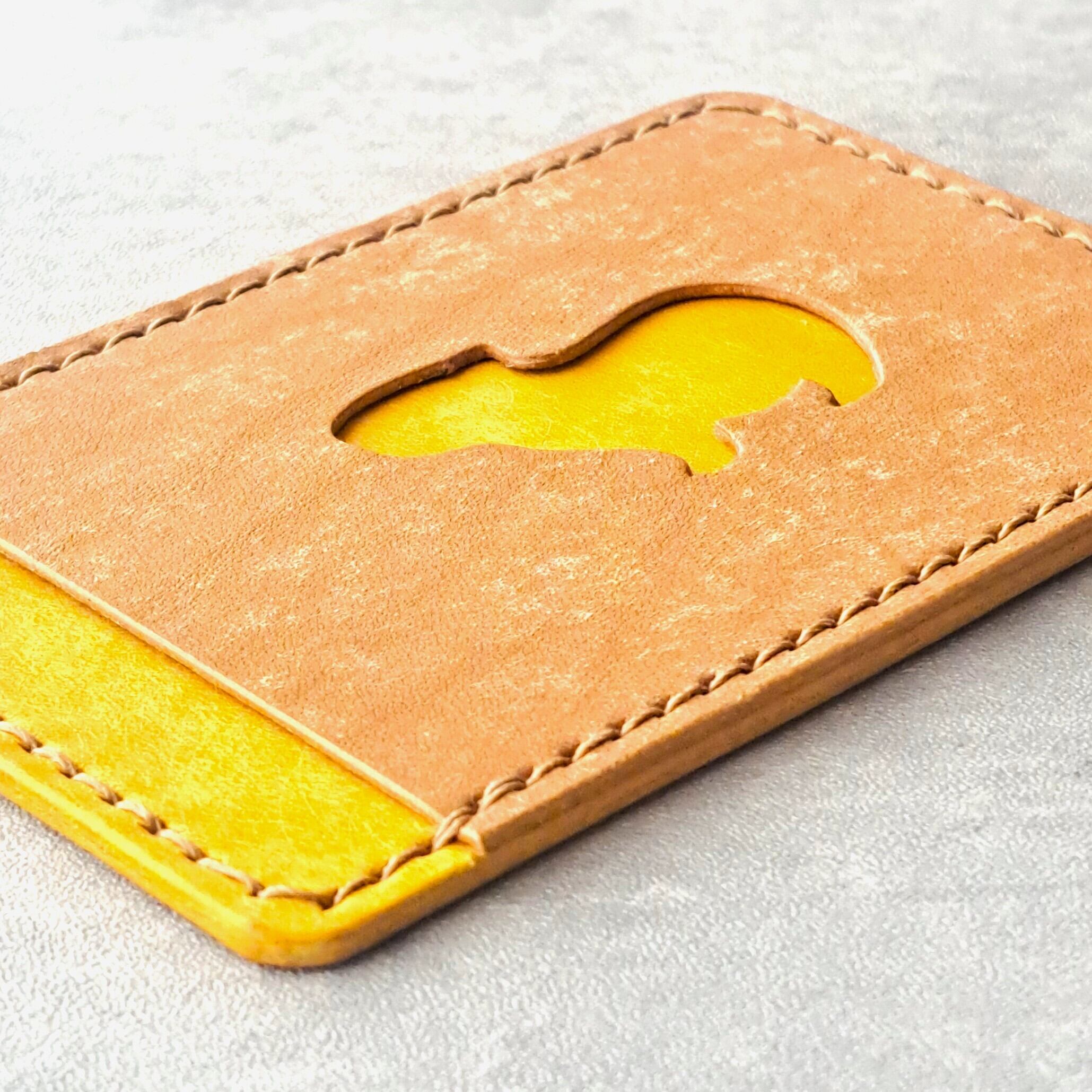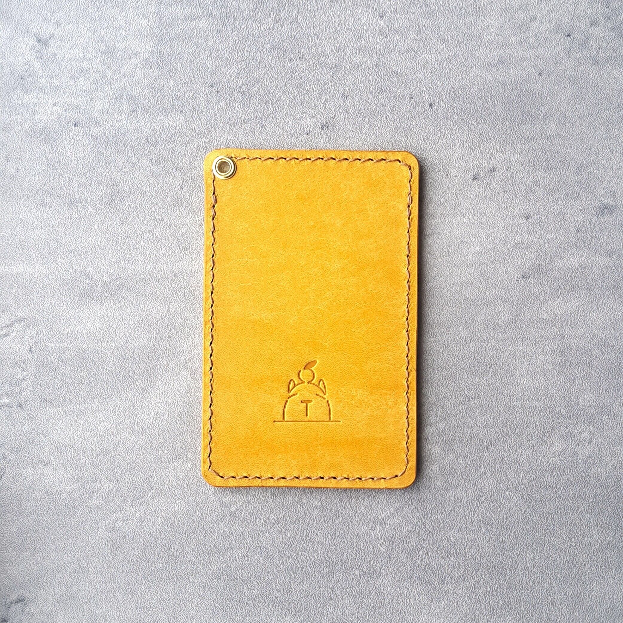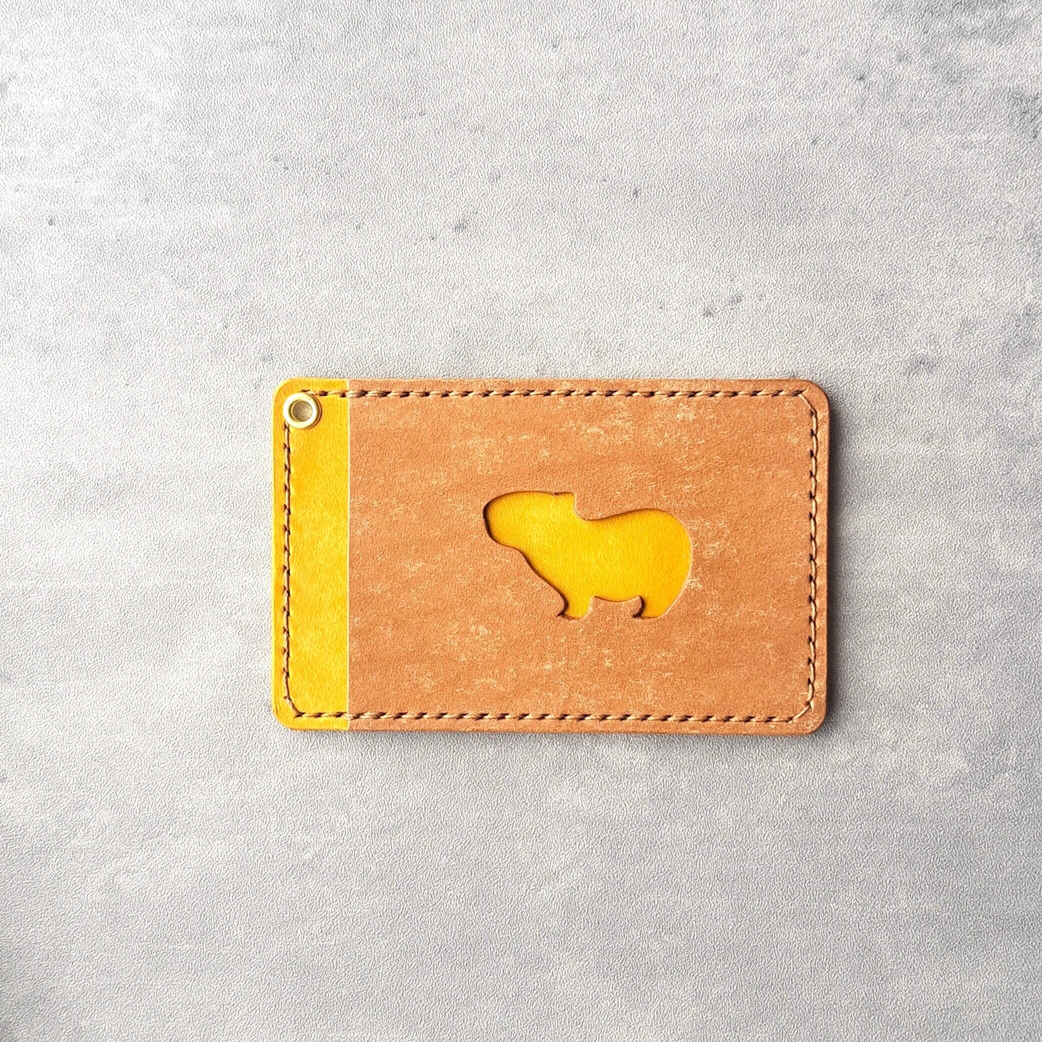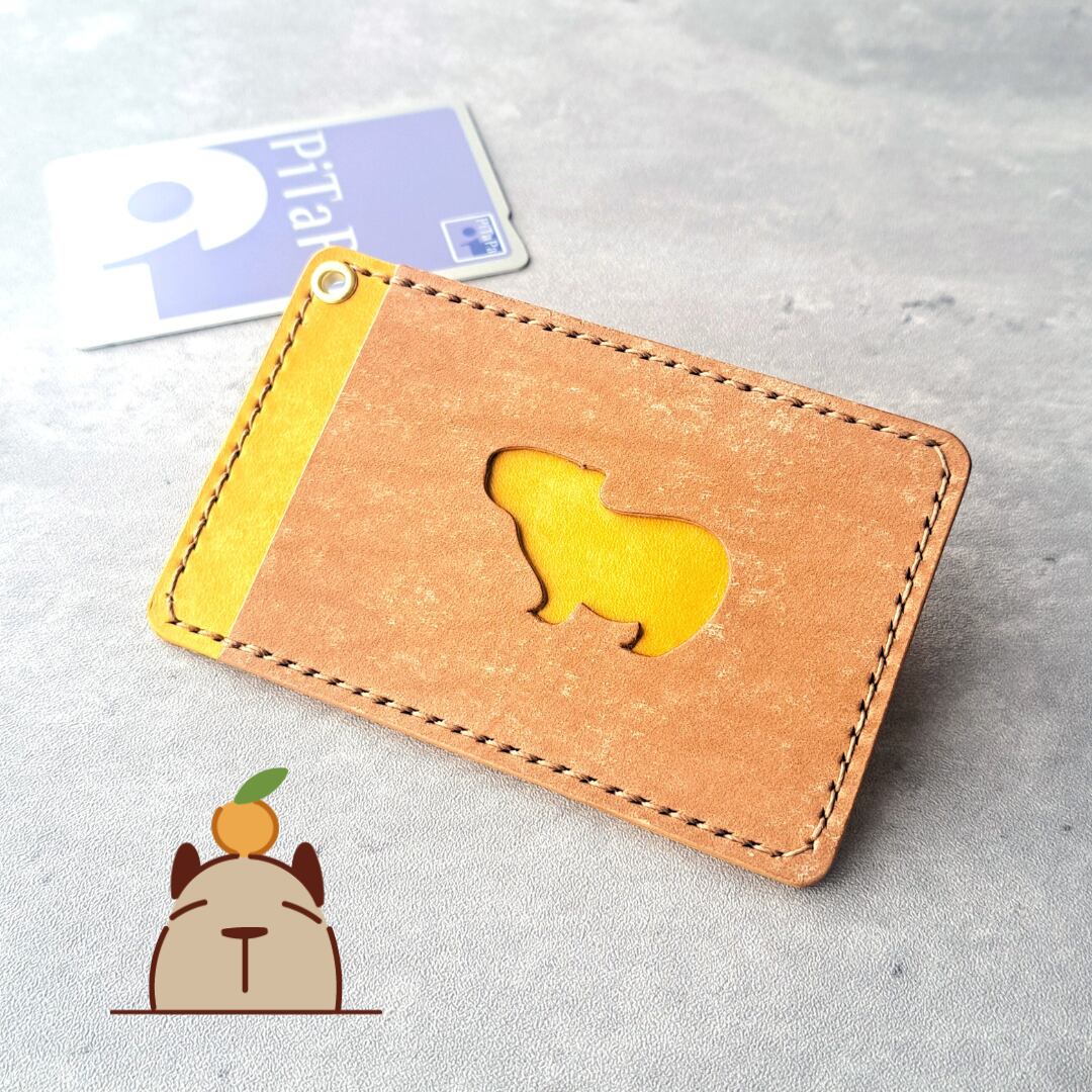 小窓のカピバラがかわいい!シンプルなレザーパスケース【イベント展示カラー】ブラウン×イエロー