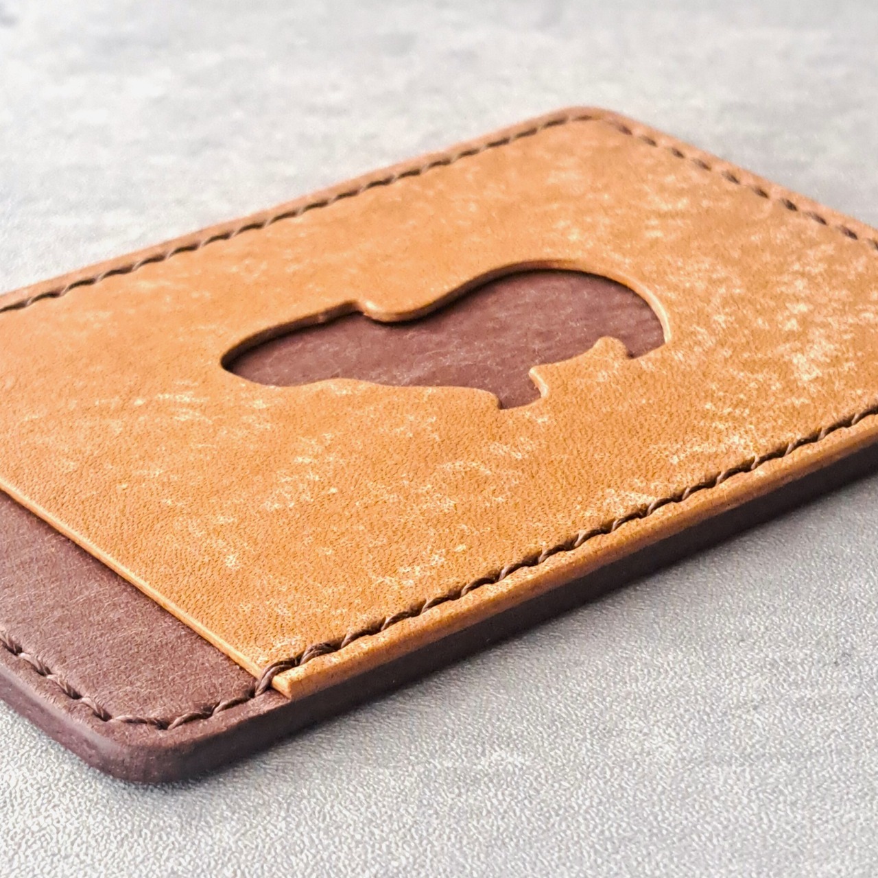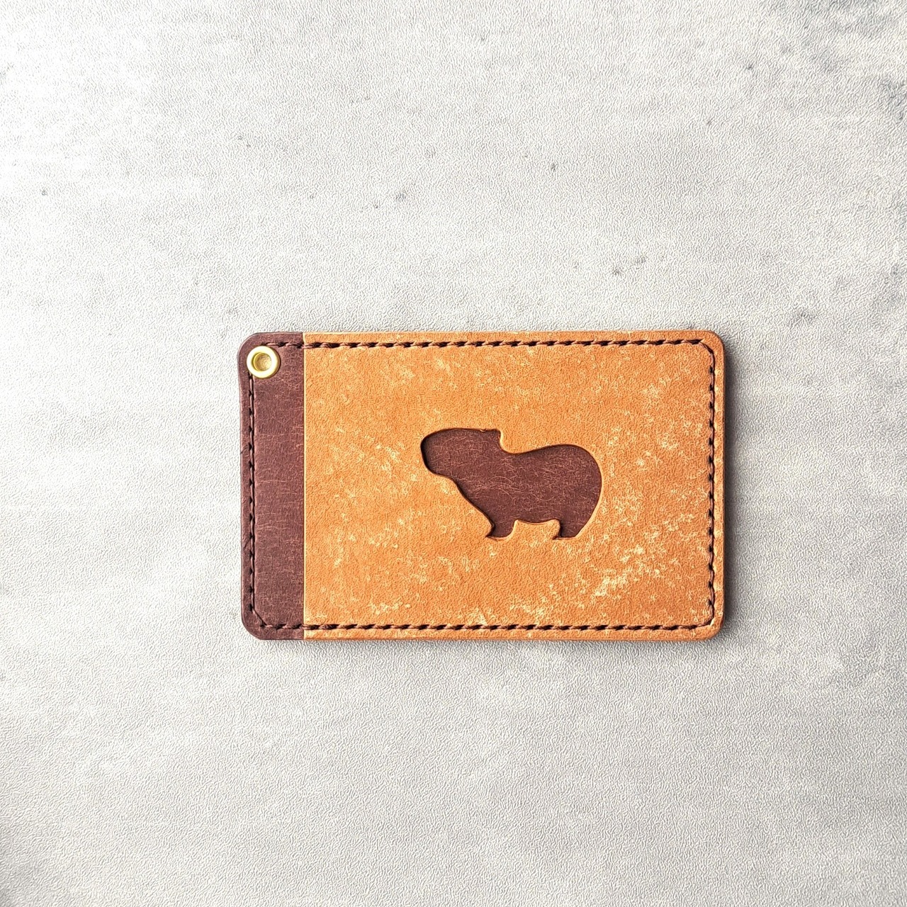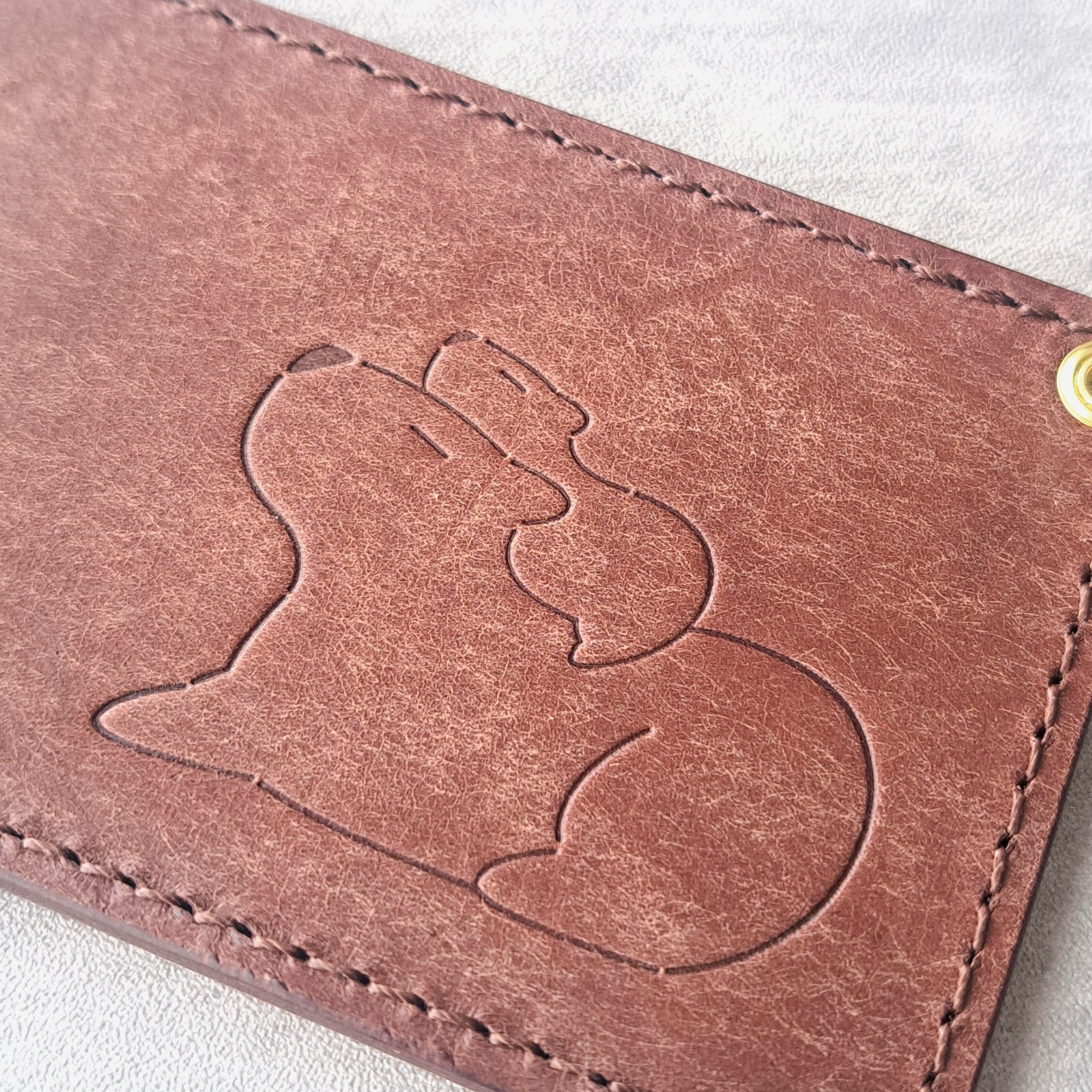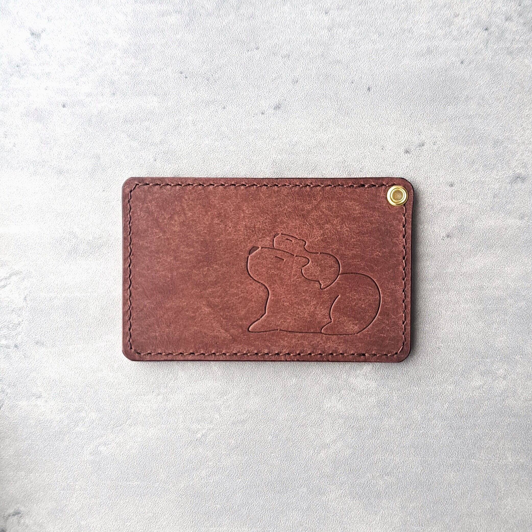 小窓のカピバラがかわいい!シンプルなレザーパスケース【イベント展示カラー】ブラウン×ダークブラウン