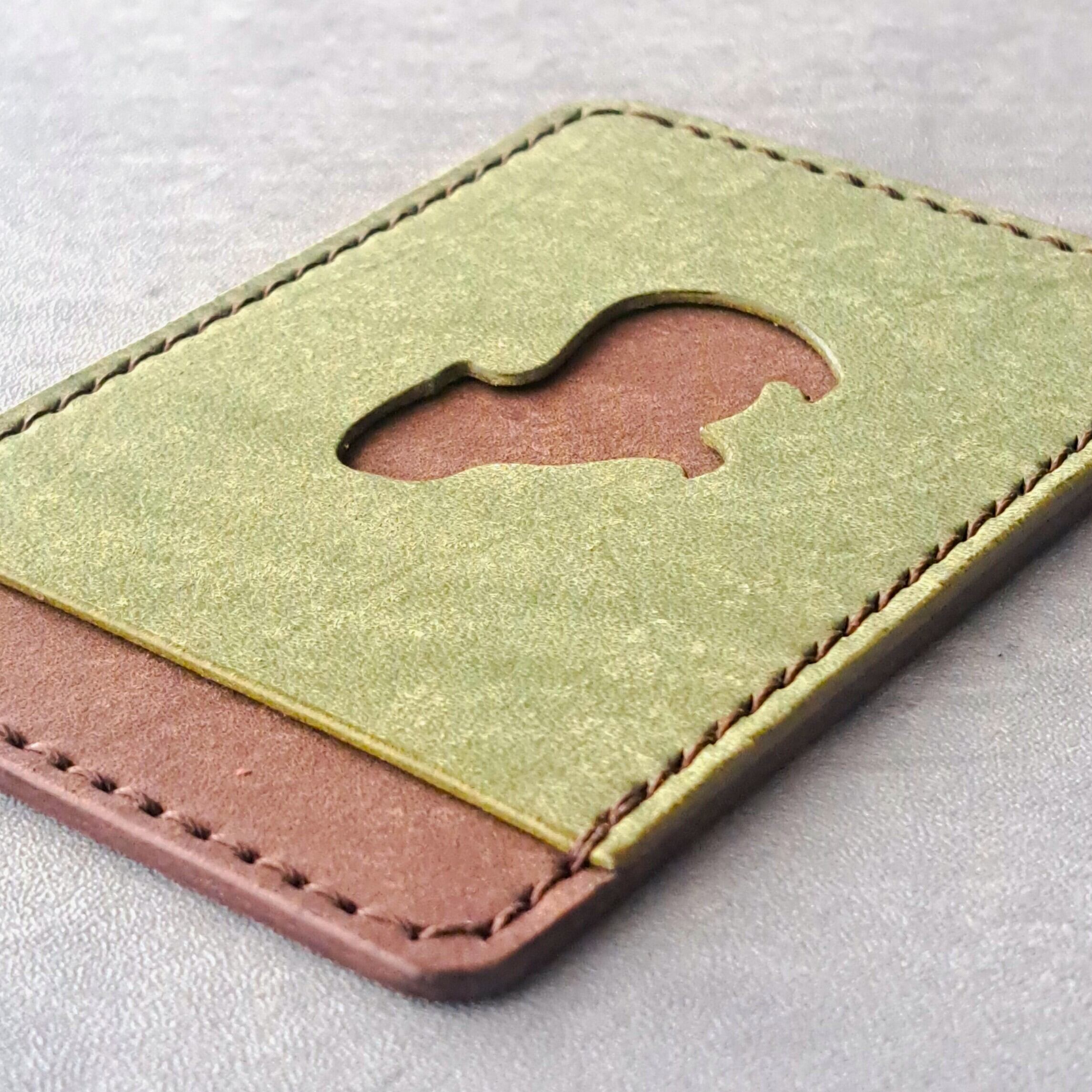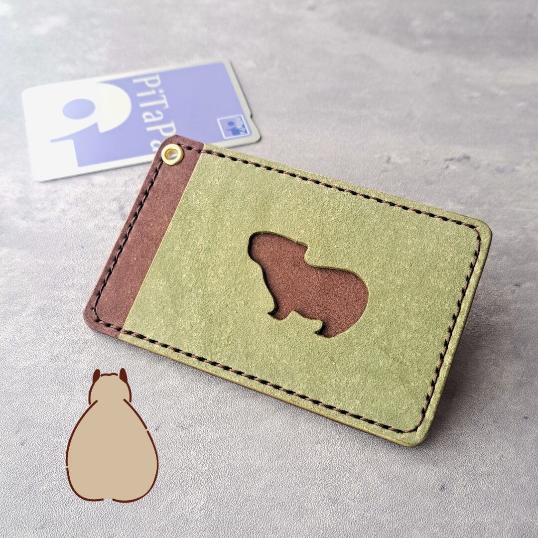 小窓のカピバラがかわいい!シンプルなレザーパスケース【イベント展示カラー】グリーン×ダークブラウン