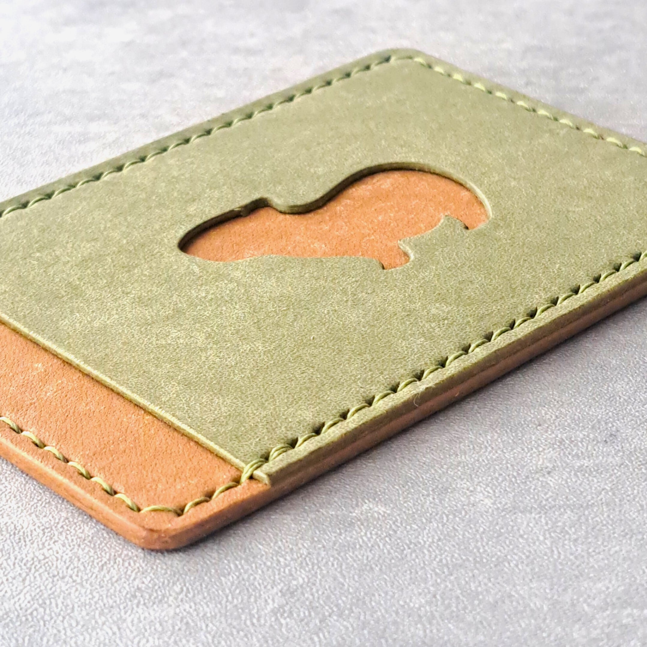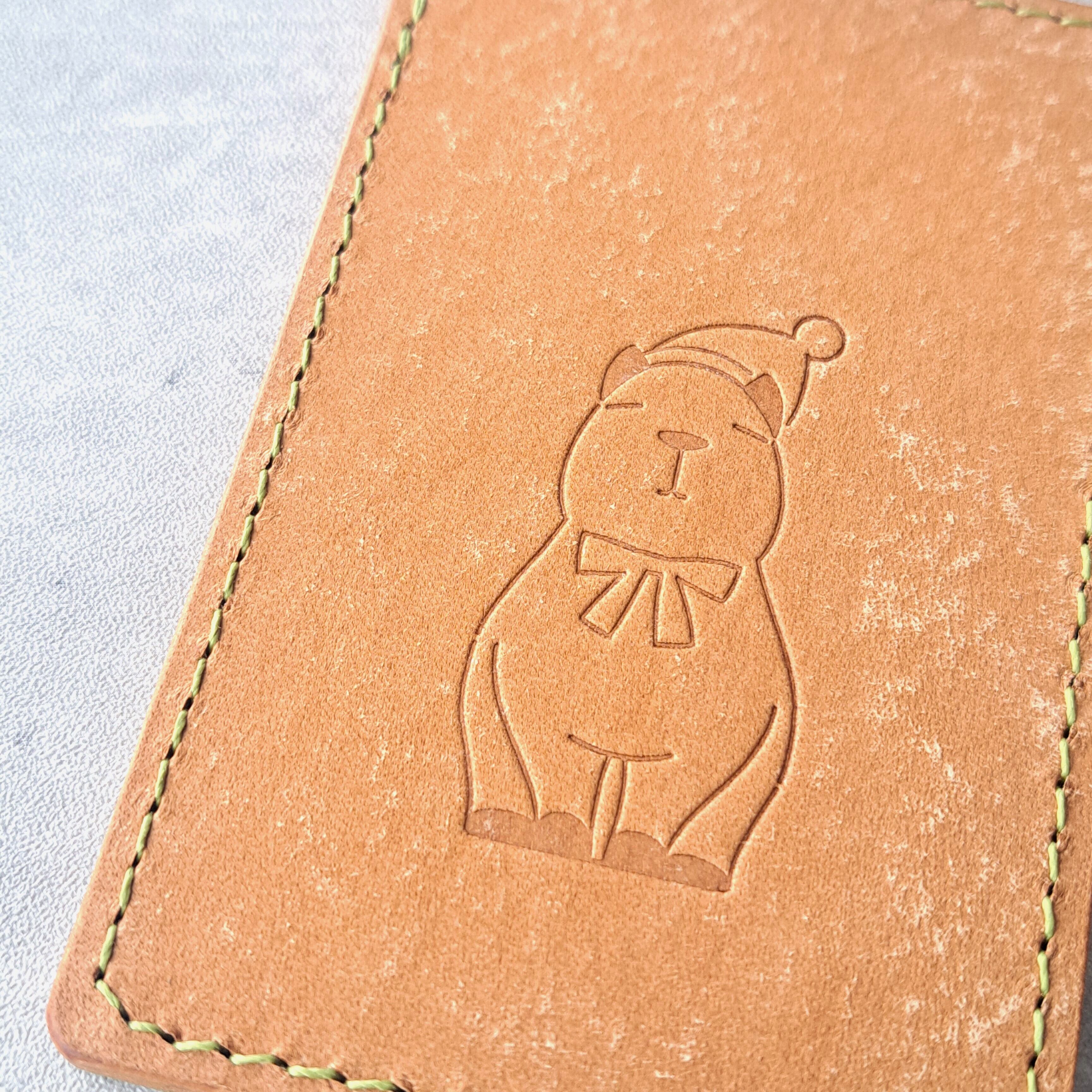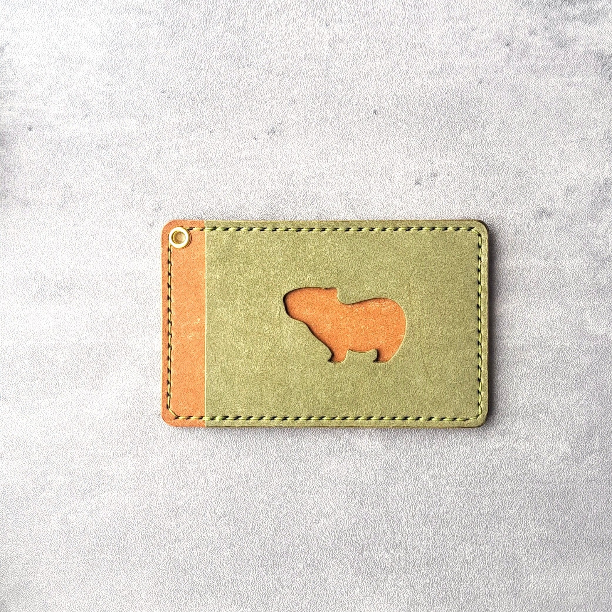 小窓のカピバラがかわいい!シンプルなレザーパスケース【イベント展示カラー】グリーン×ブラウン