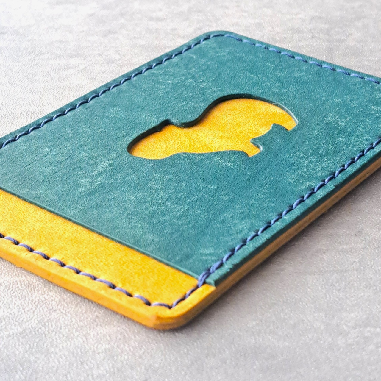 小窓のカピバラがかわいい!シンプルなレザーパスケース【イベント展示カラー】ターコイズ×イエロー