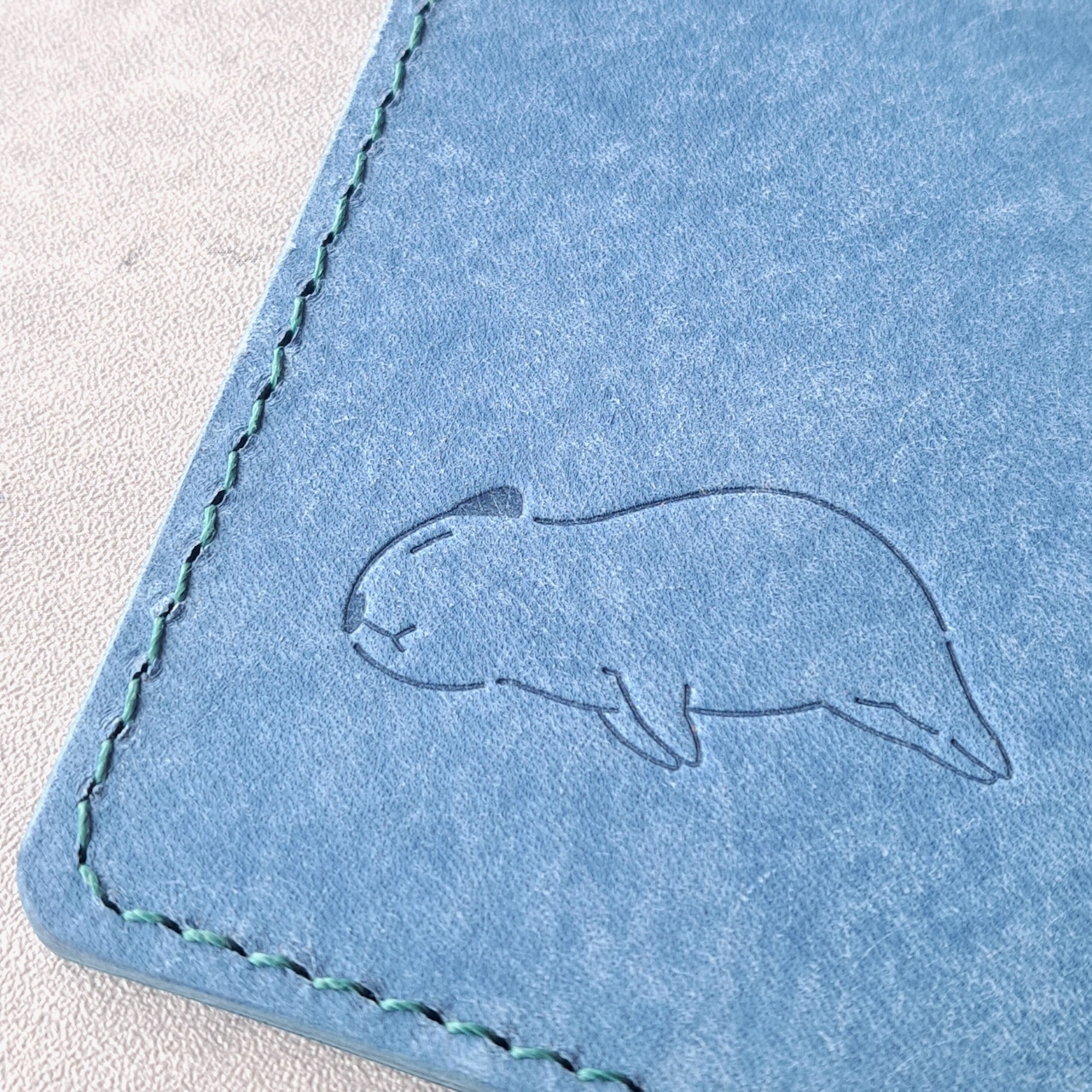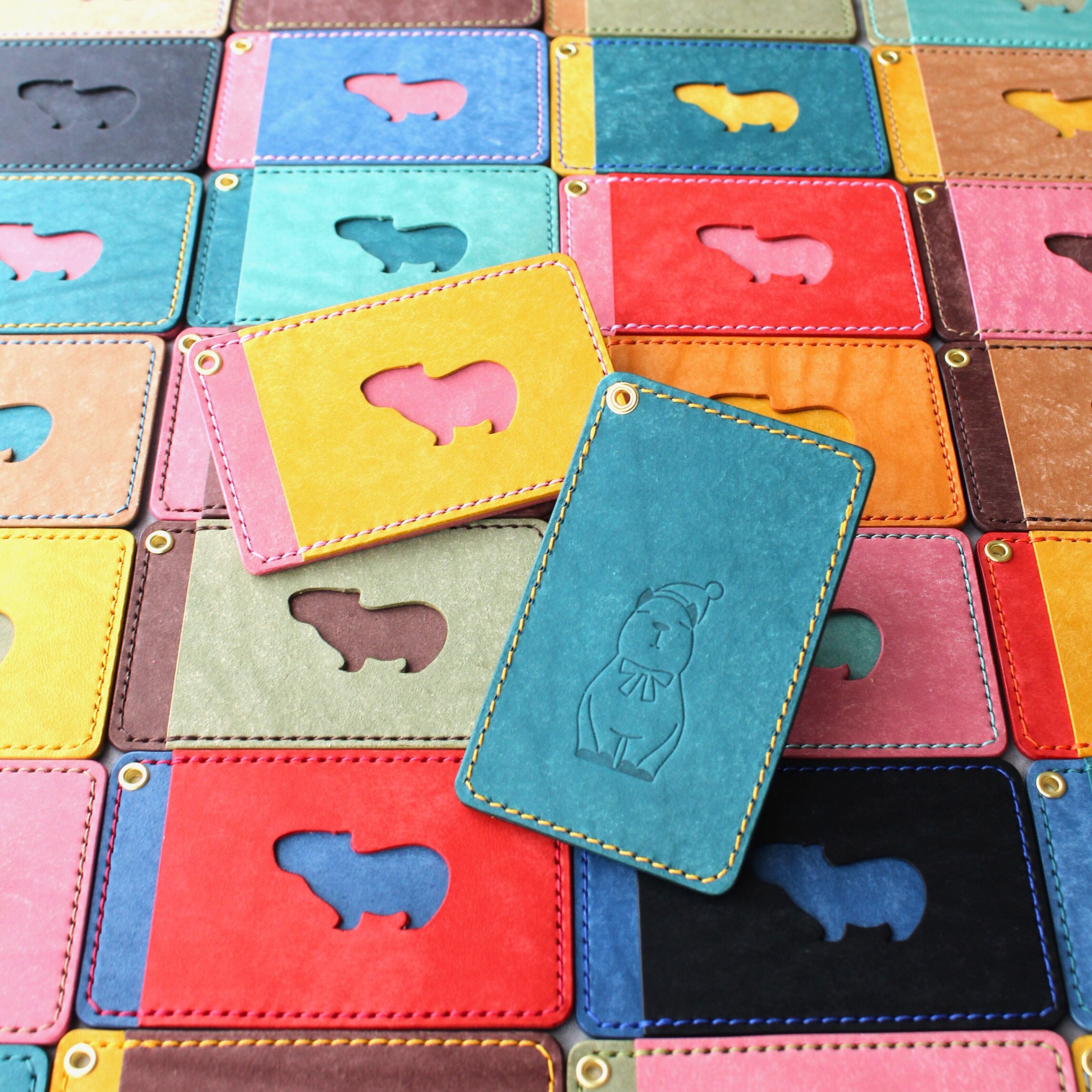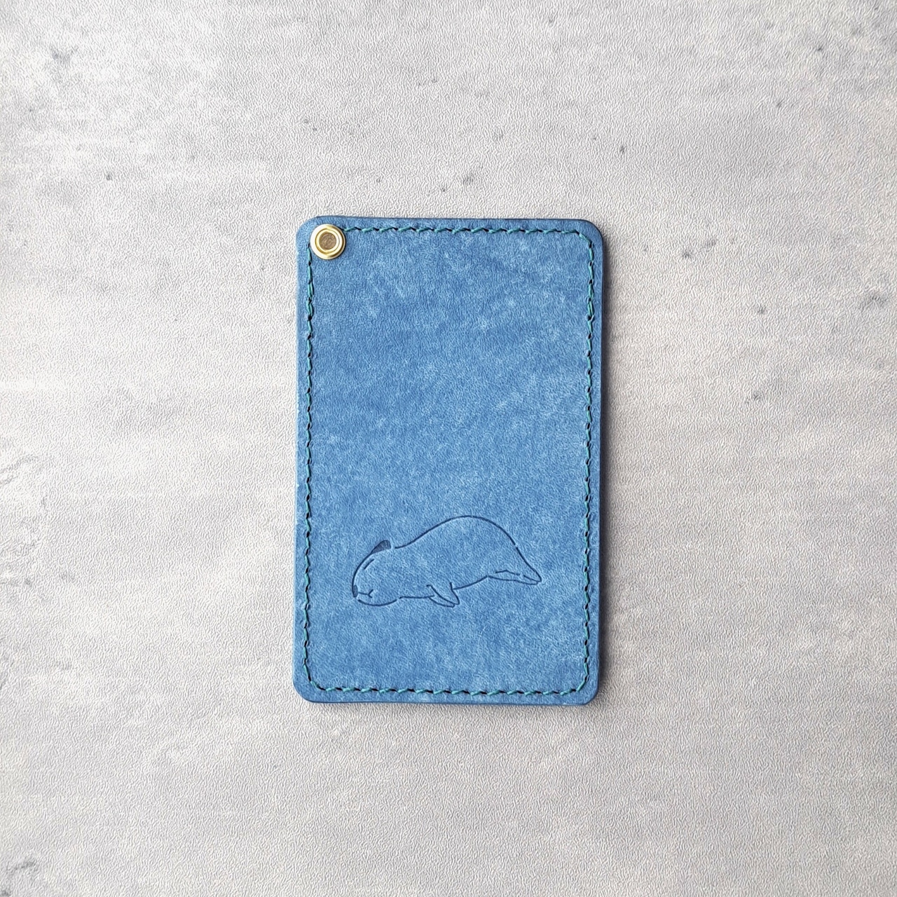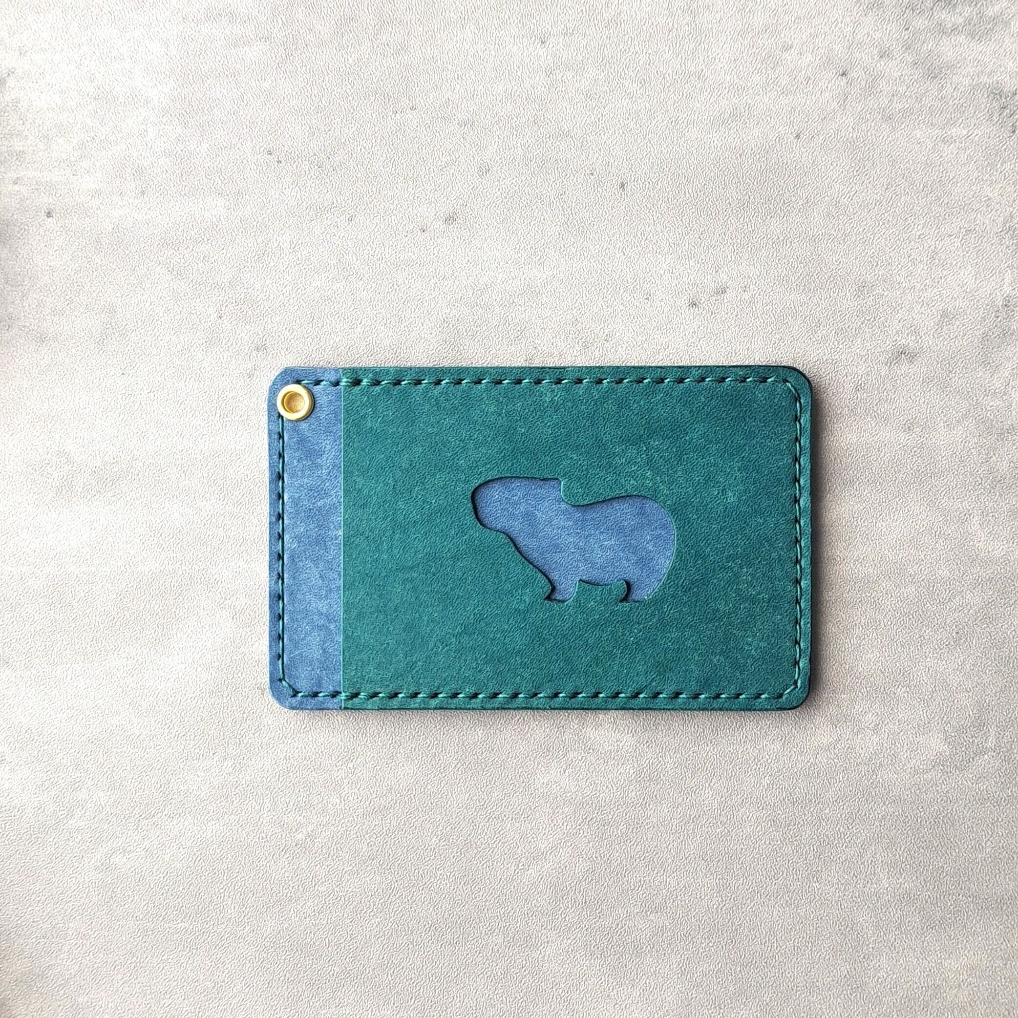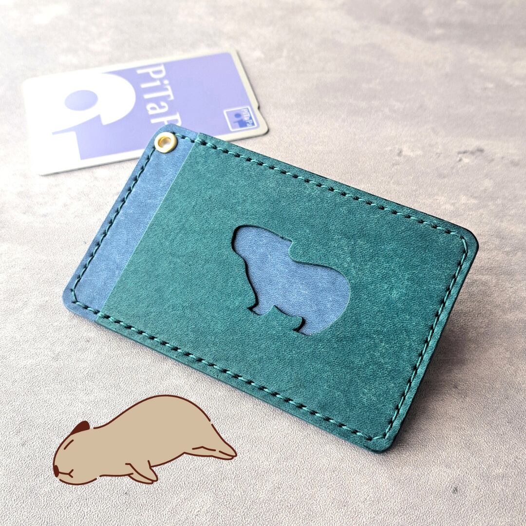 小窓のカピバラがかわいい!シンプルなレザーパスケース【イベント展示カラー】ターコイズ×ブルー