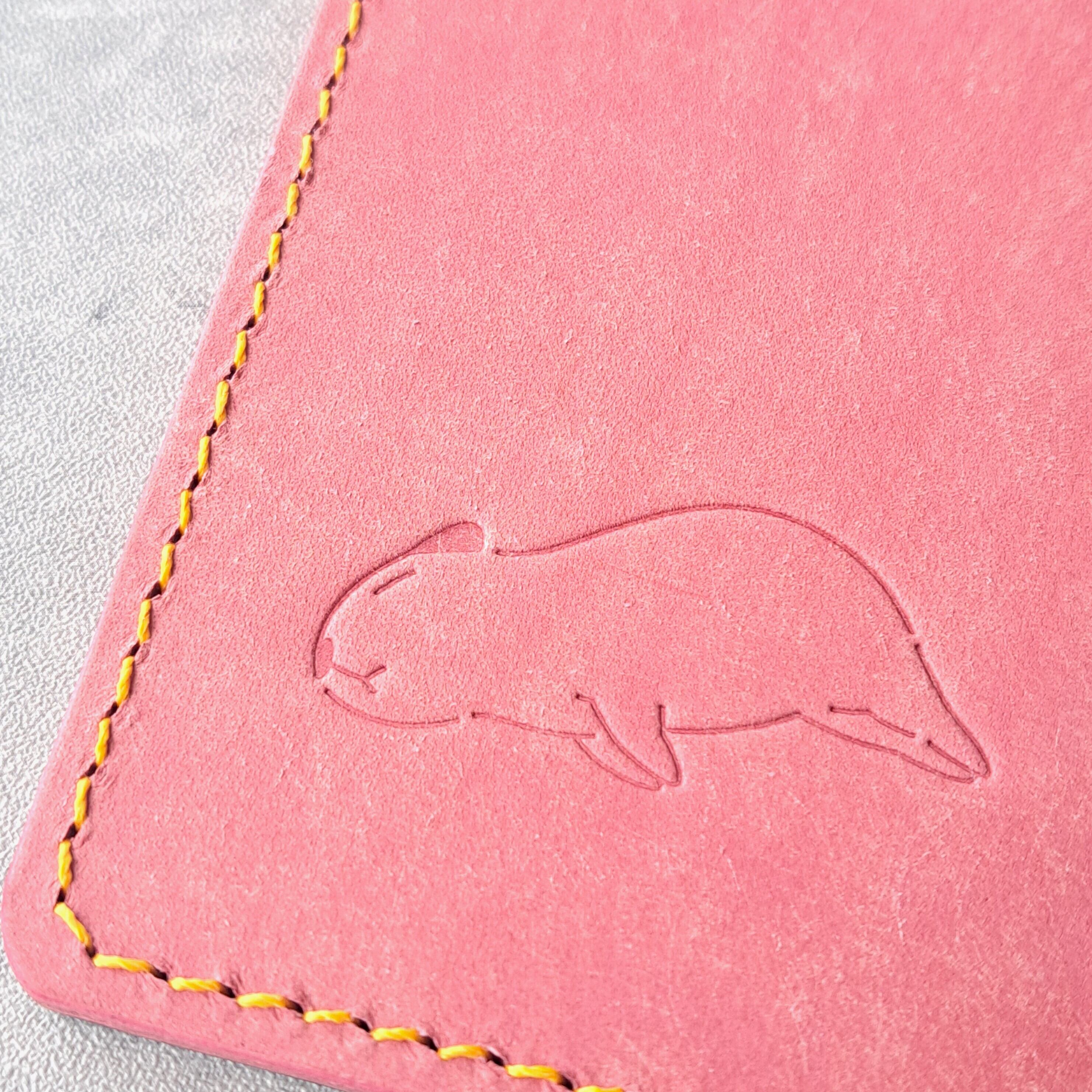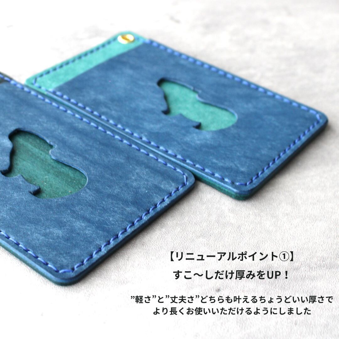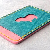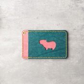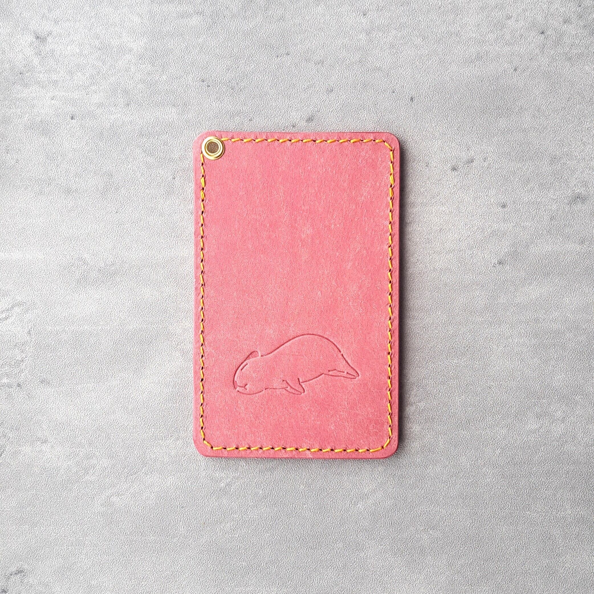 小窓のカピバラがかわいい!シンプルなレザーパスケース【イベント展示カラー】ターコイズ×ピンク