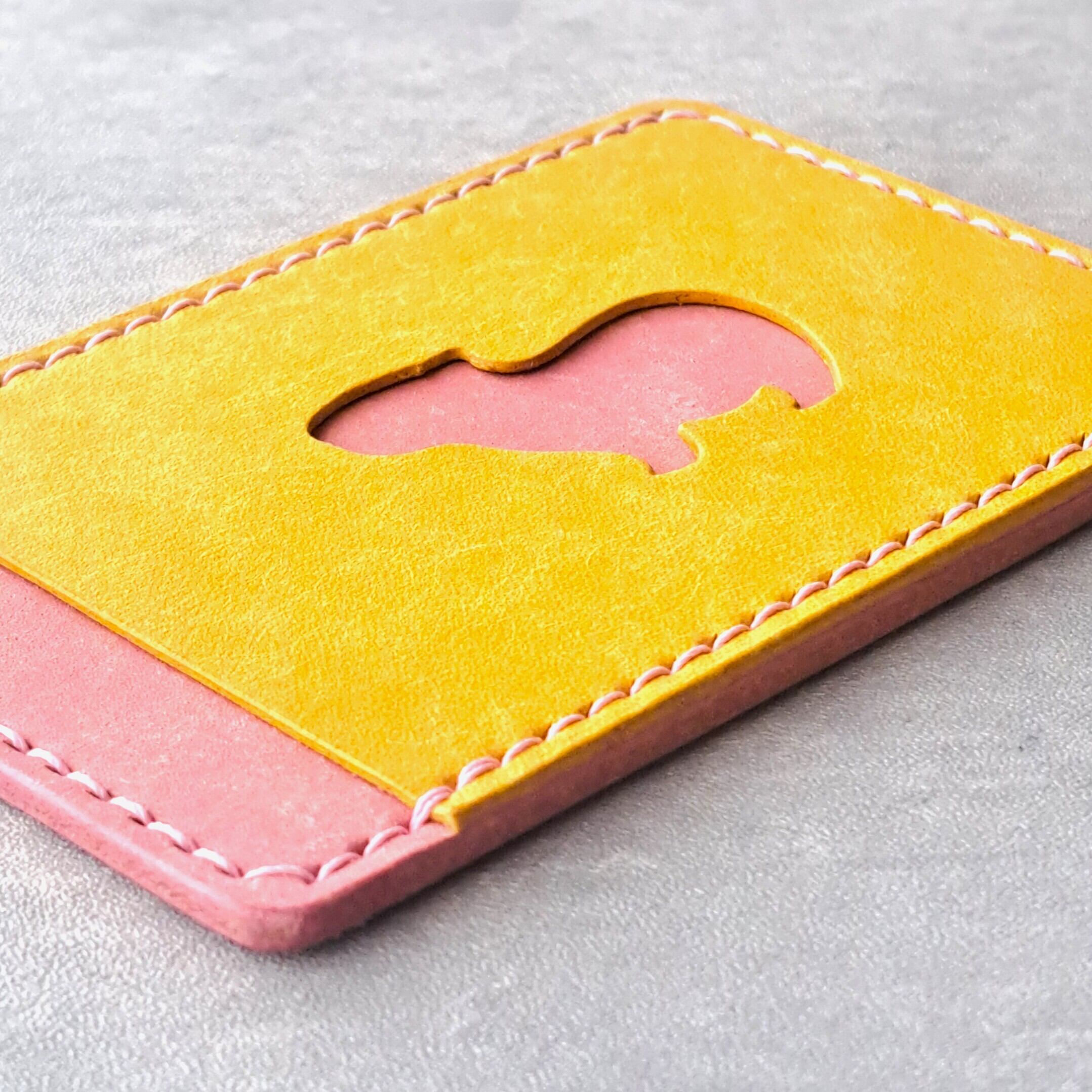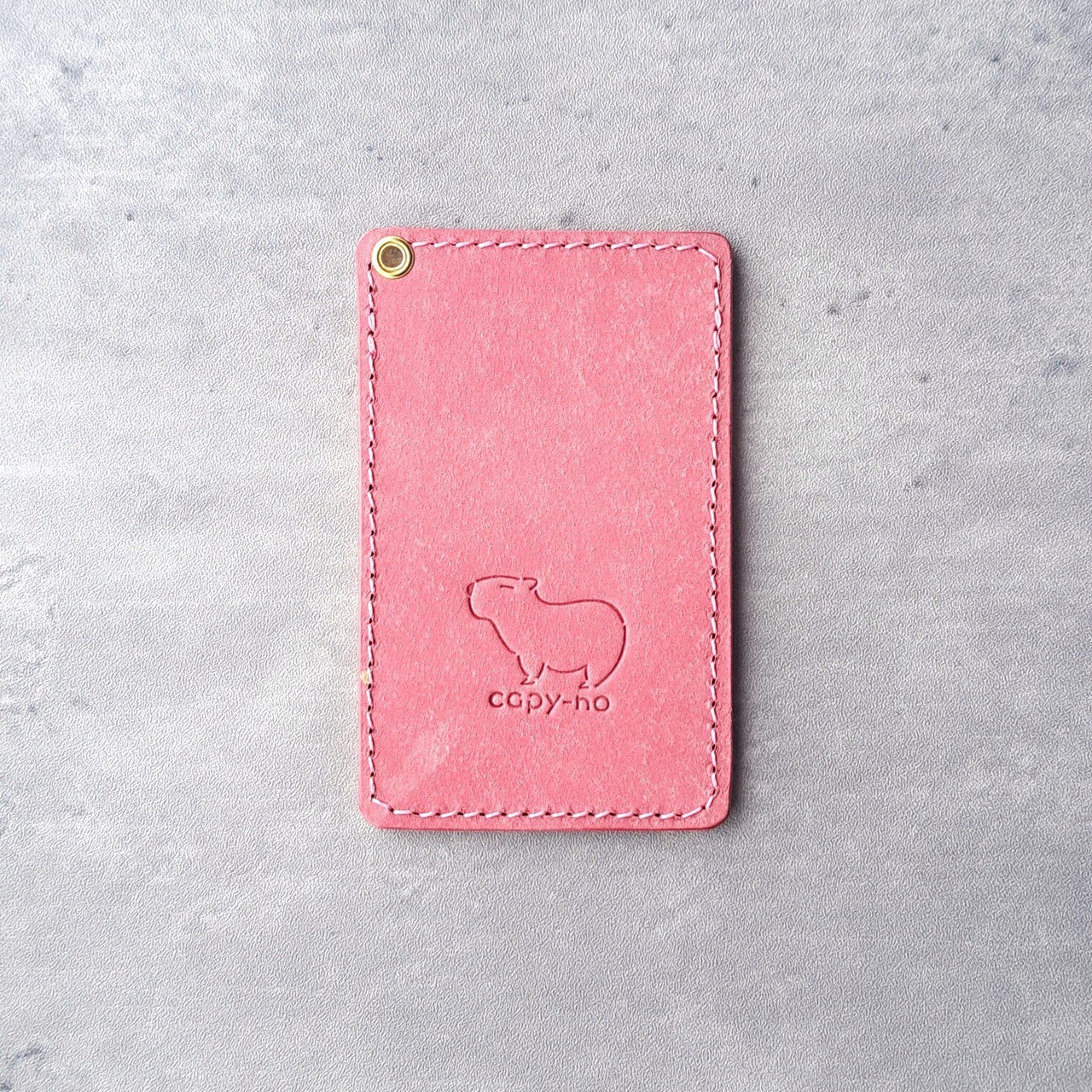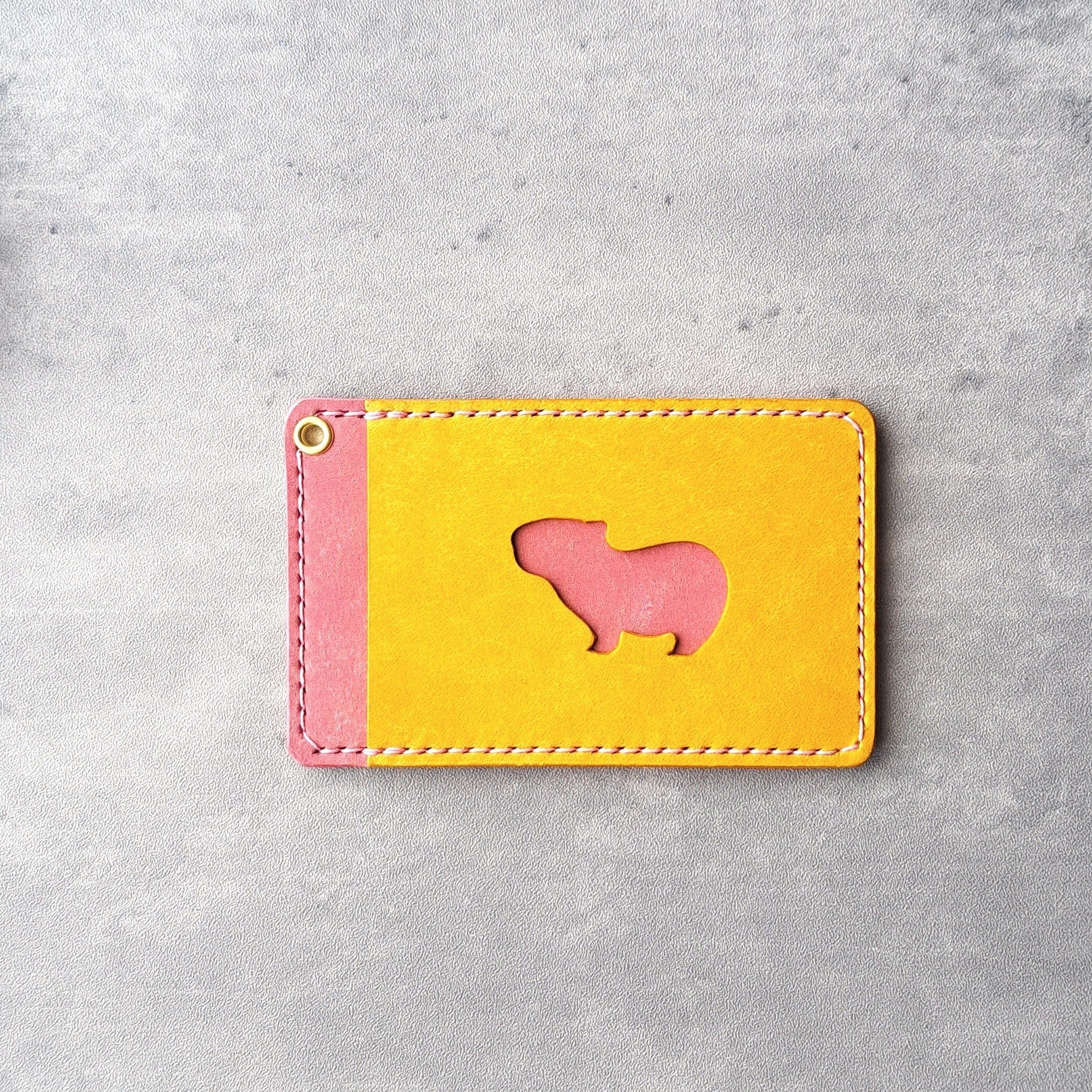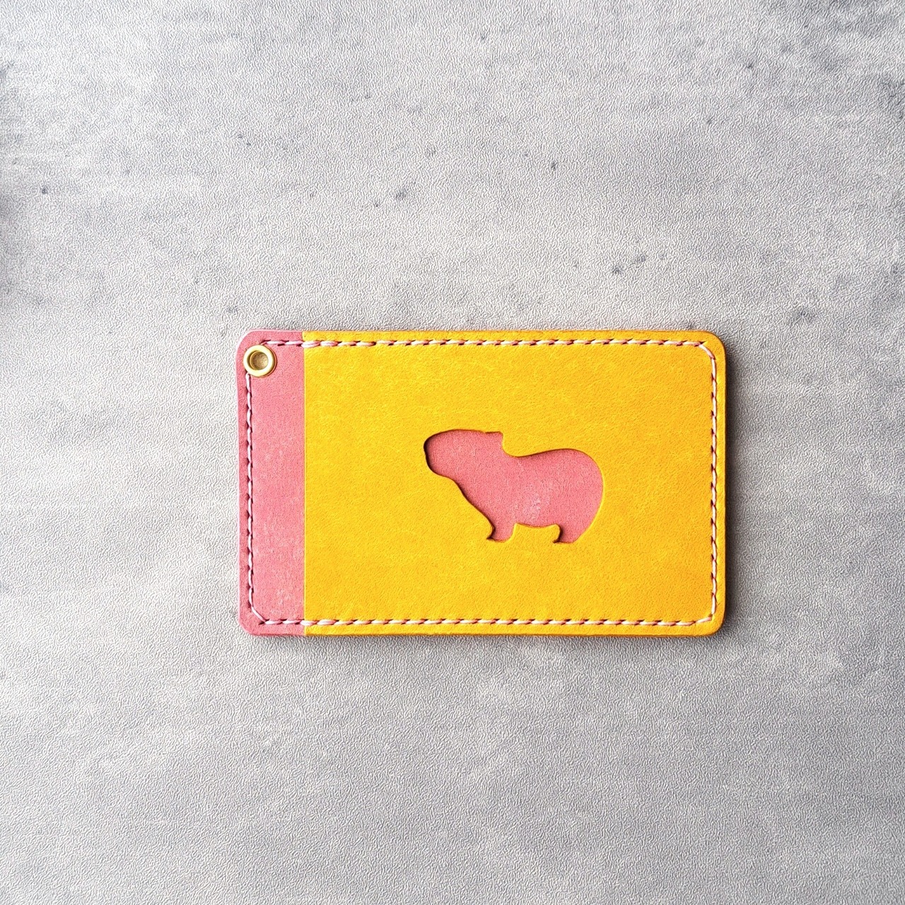 小窓のカピバラがかわいい!シンプルなレザーパスケース【イベント展示カラー】イエロー×ピンク