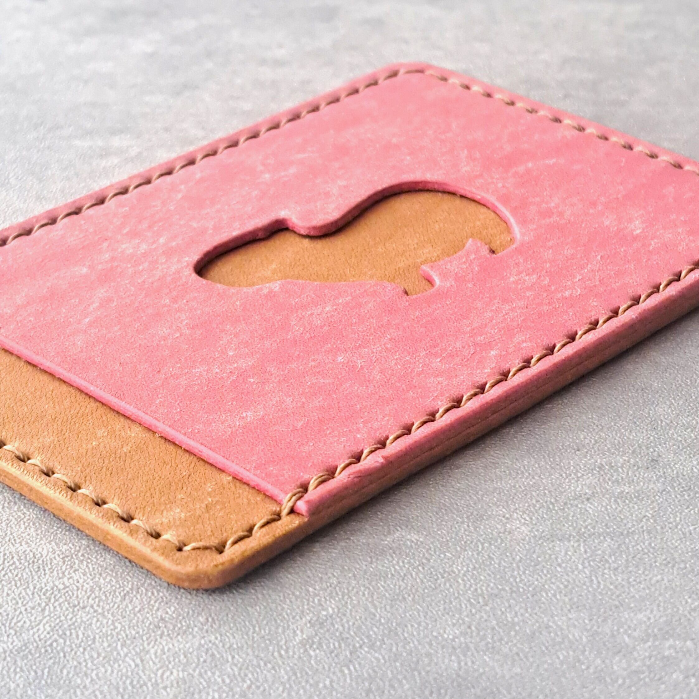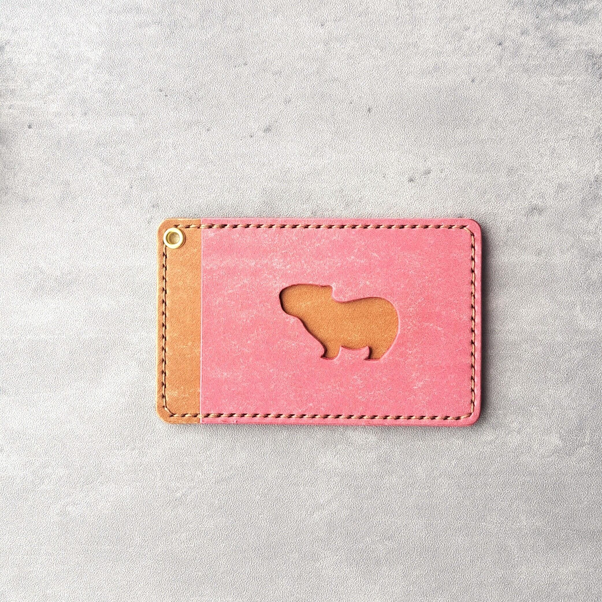 小窓のカピバラがかわいい!シンプルなレザーパスケース【イベント展示カラー】ピンク×ブラウン