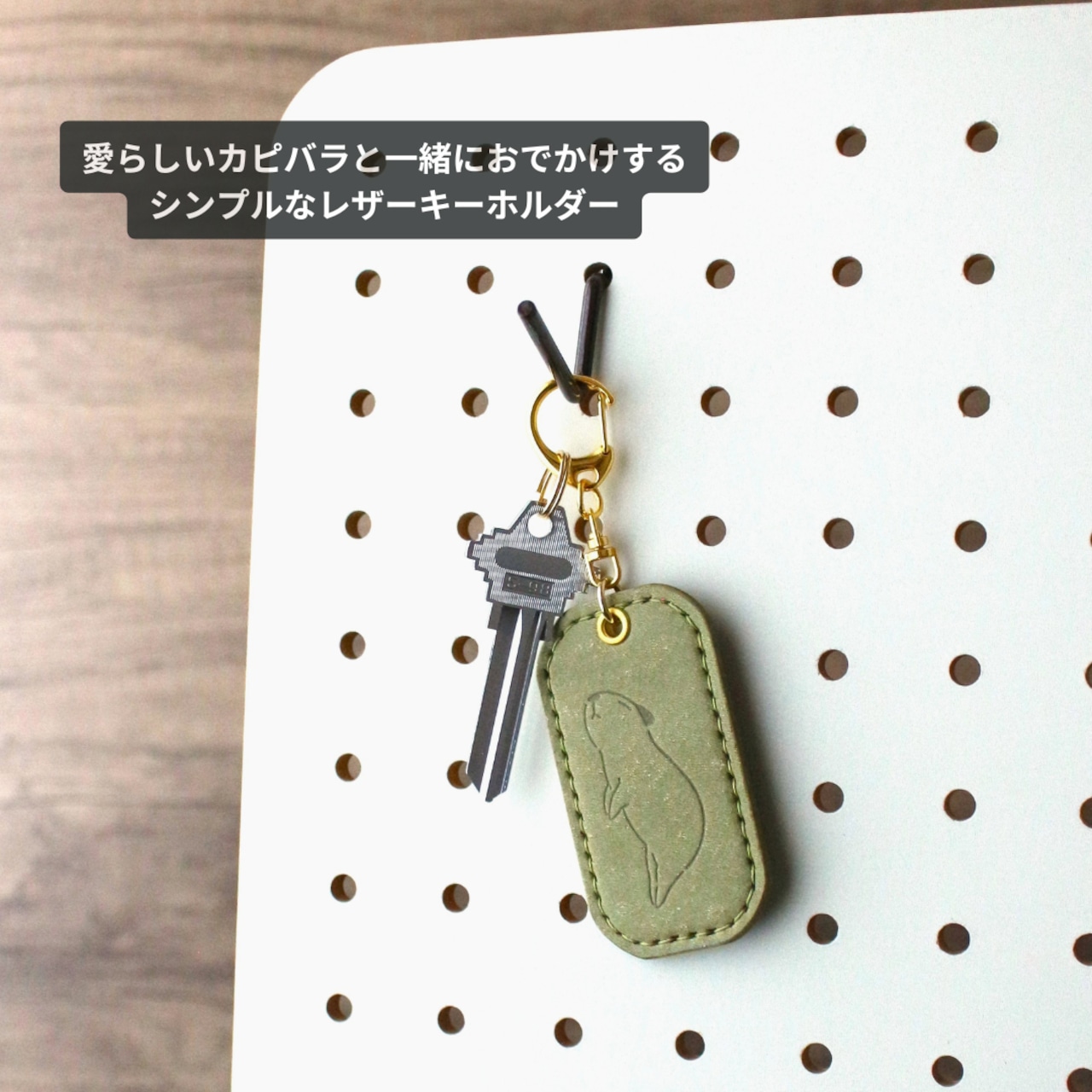 上質なイタリアンレザーで仕立てたシンプルなデザインに、さりげないカピバラデザインで