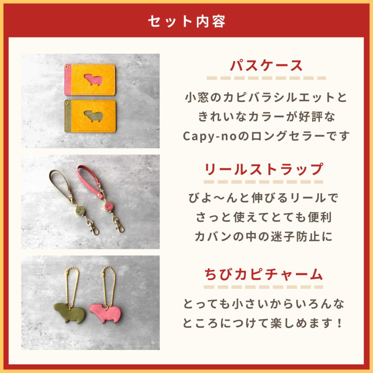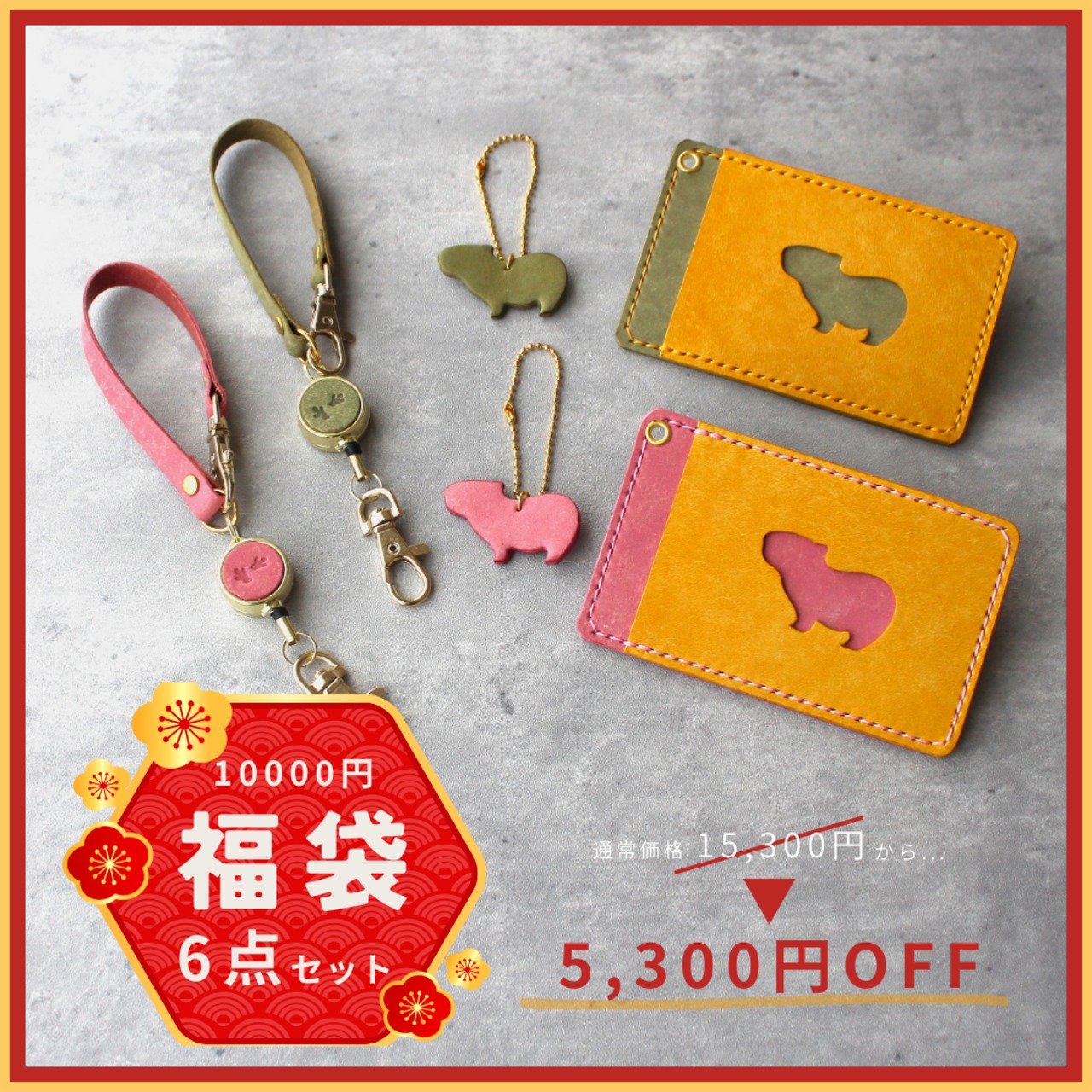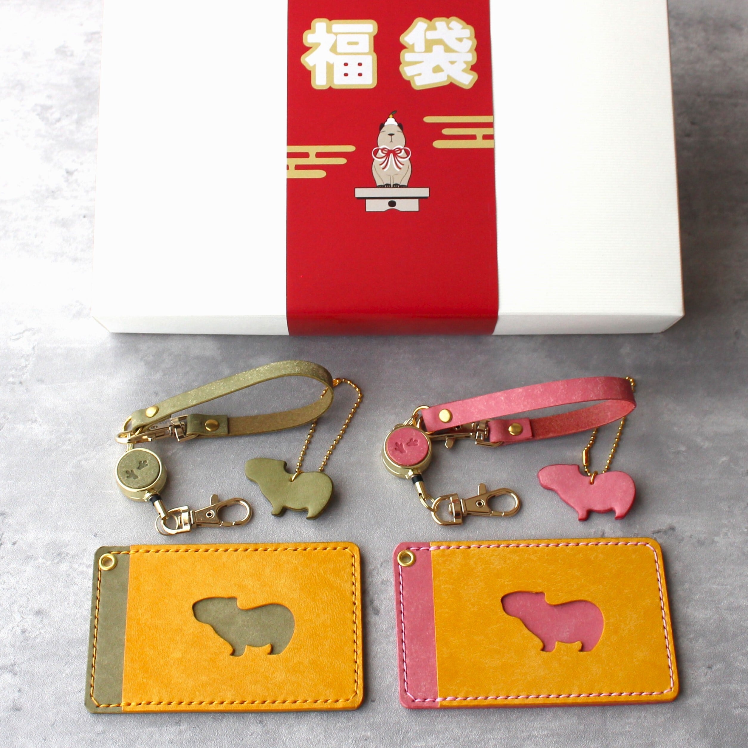 新春カピバラ福袋2026 10000円 パスケースペアセット ピンク・グリーン・イエロー