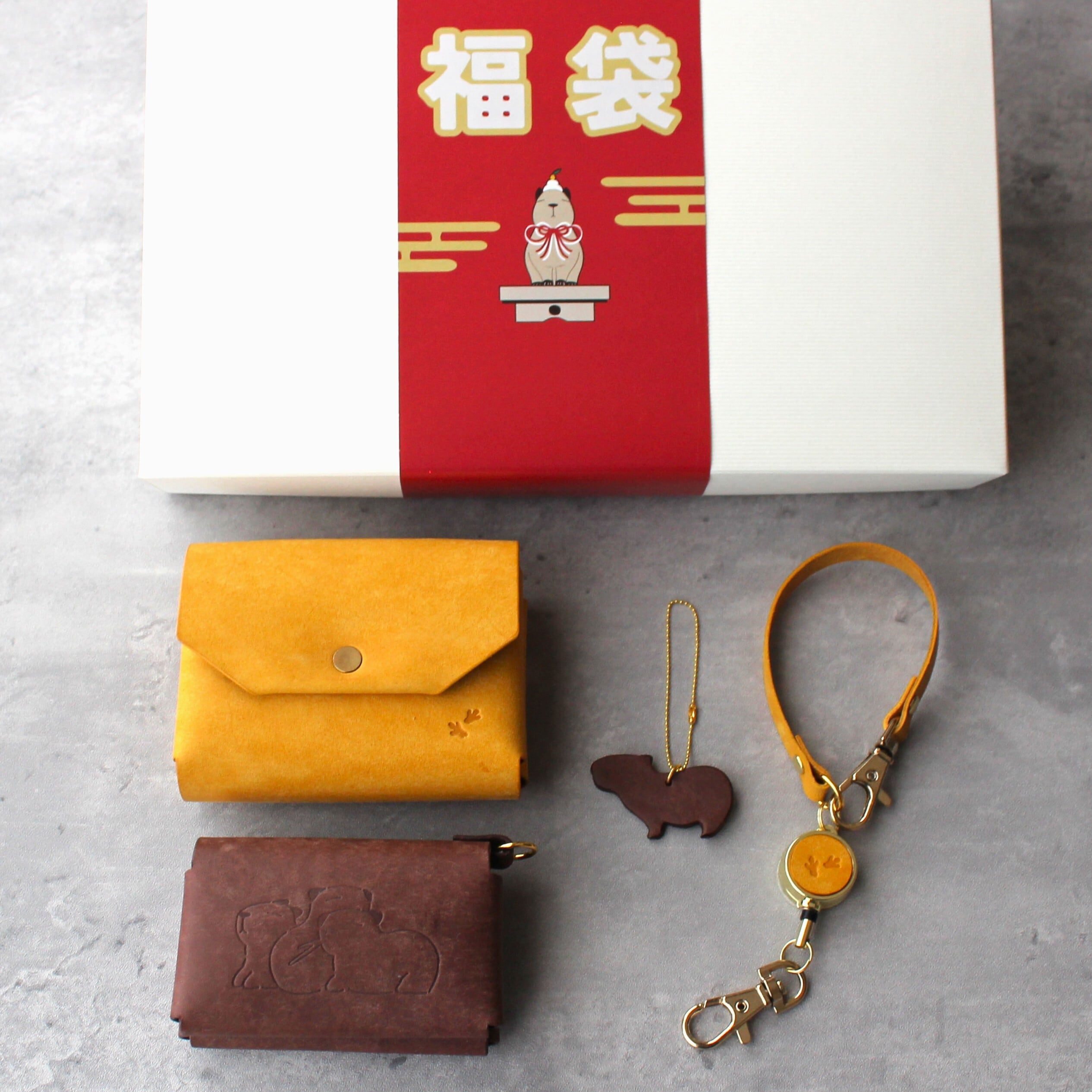 新春カピバラ福袋2026 10000円 コンパクト財布セット イエロー・ダークブラウン
