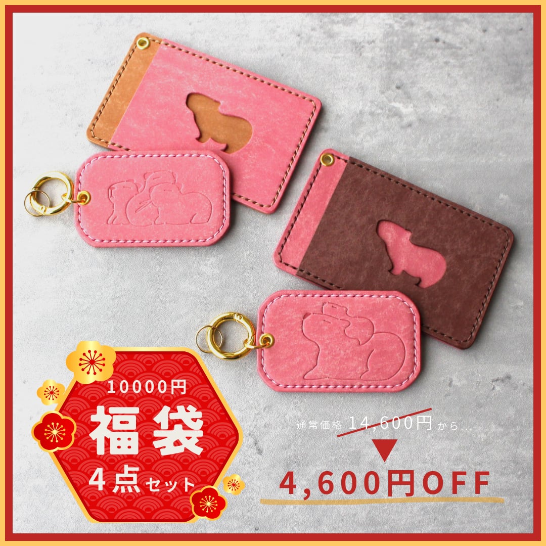新春カピバラ福袋2026 10000円 パスケースペアセット ピンク・ブラウン・ダークブラウン