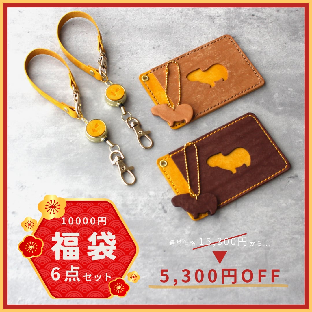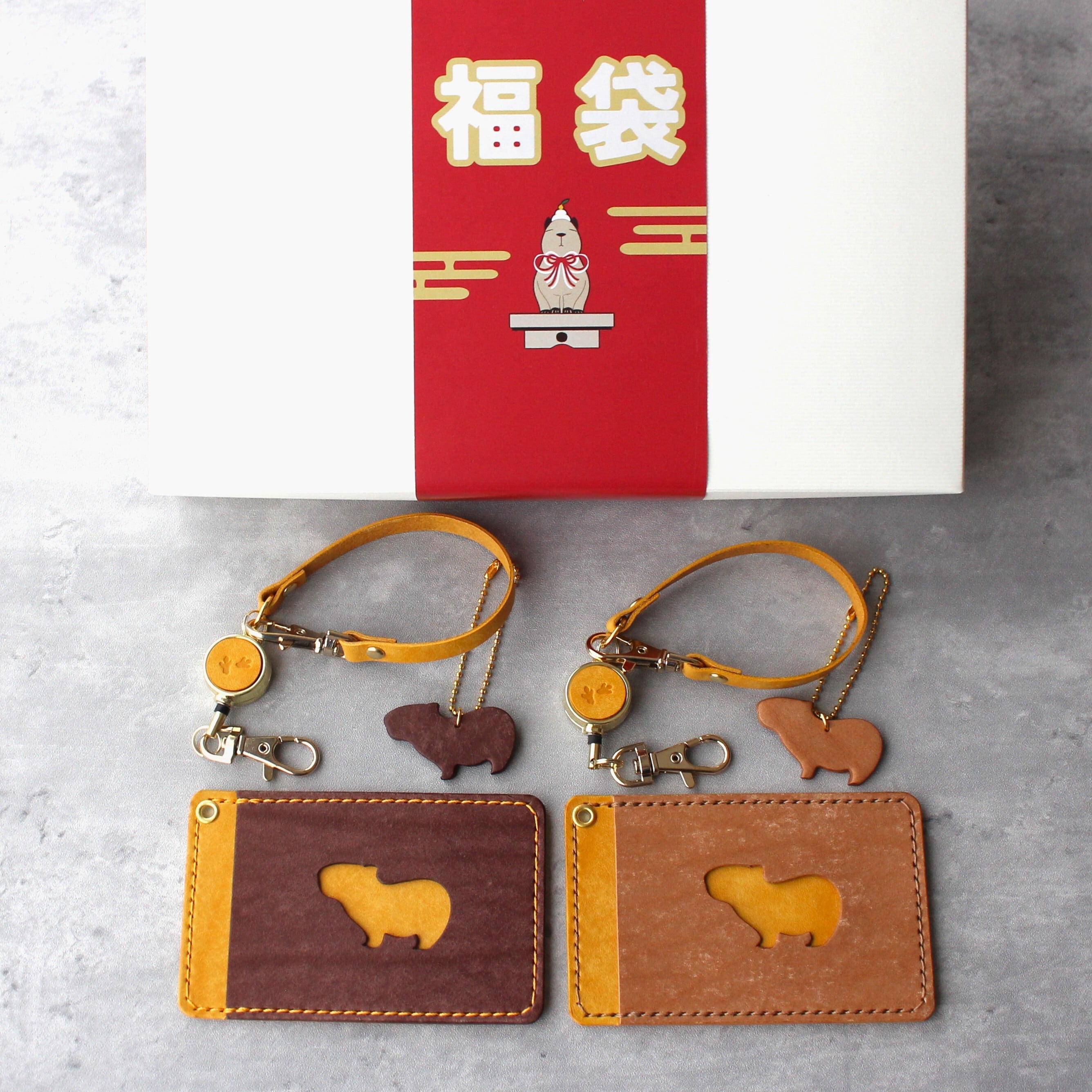 新春カピバラ福袋2026 10000円 パスケースペアセット イエロー・ダークブラウン・ブラウン