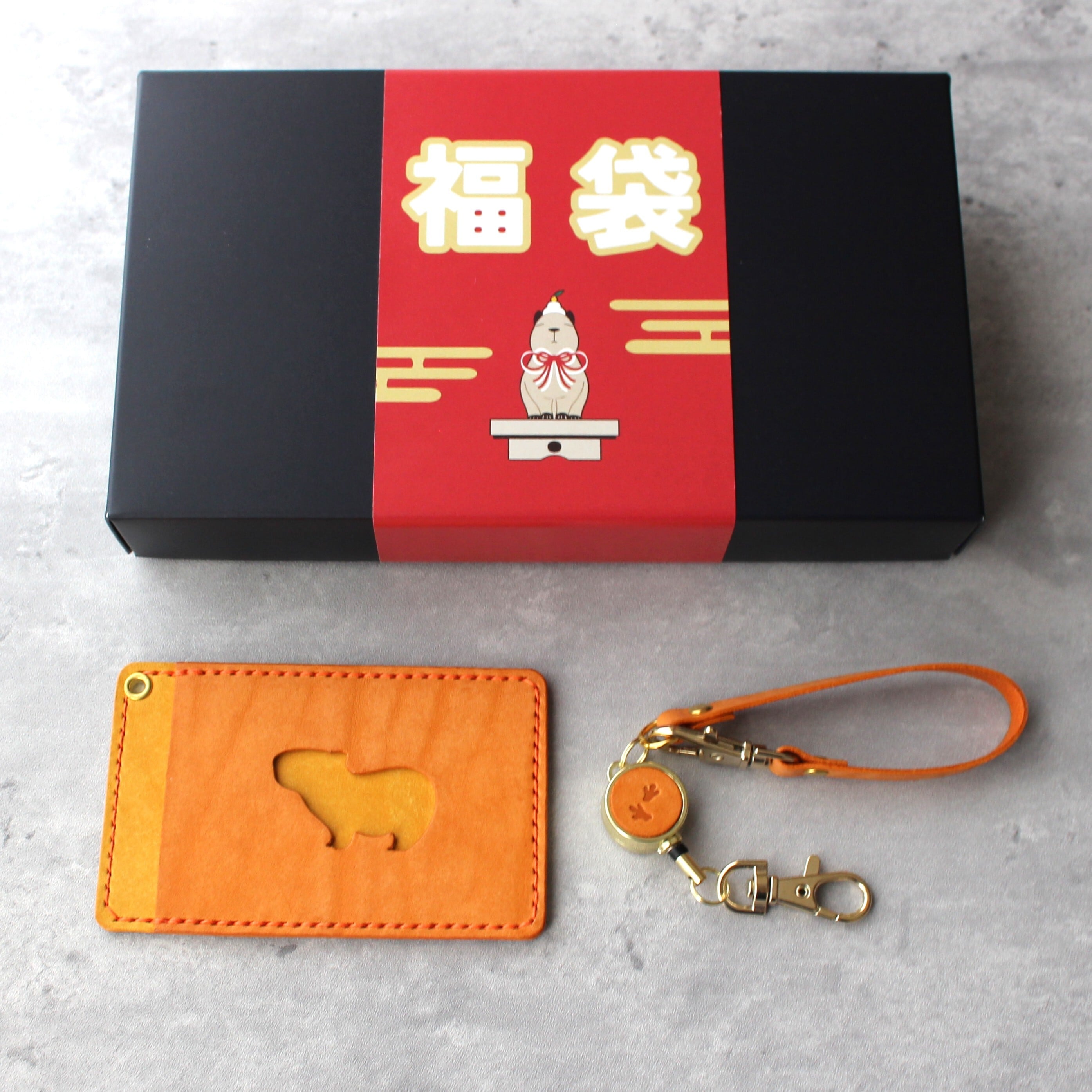 新春カピバラ福袋2026 5000円 パスケースセット オレンジ・イエロー・ダークブラウン