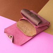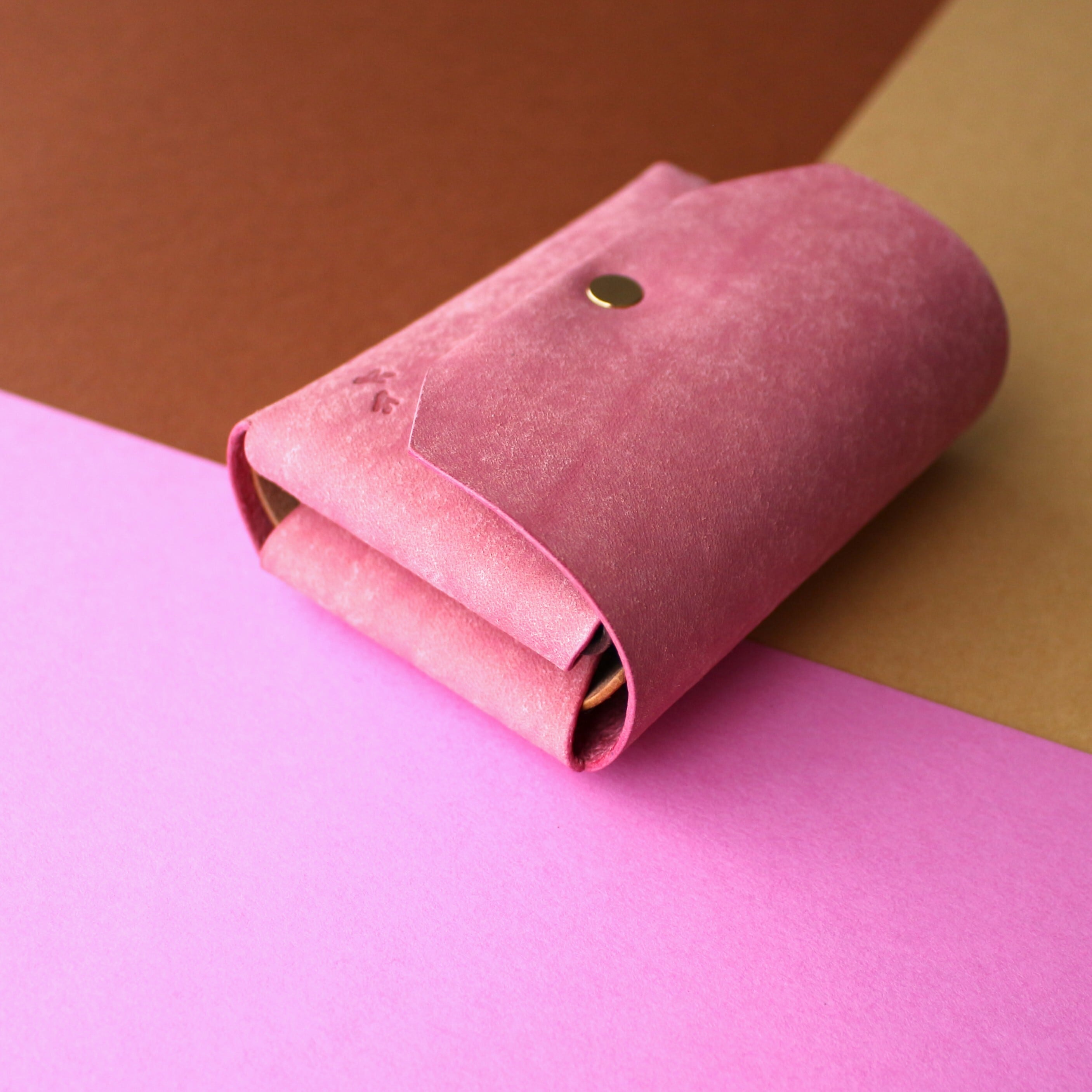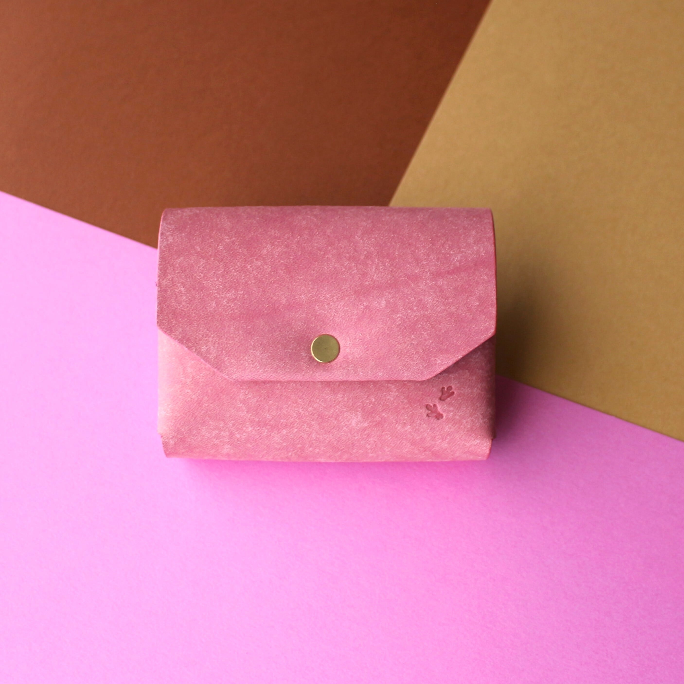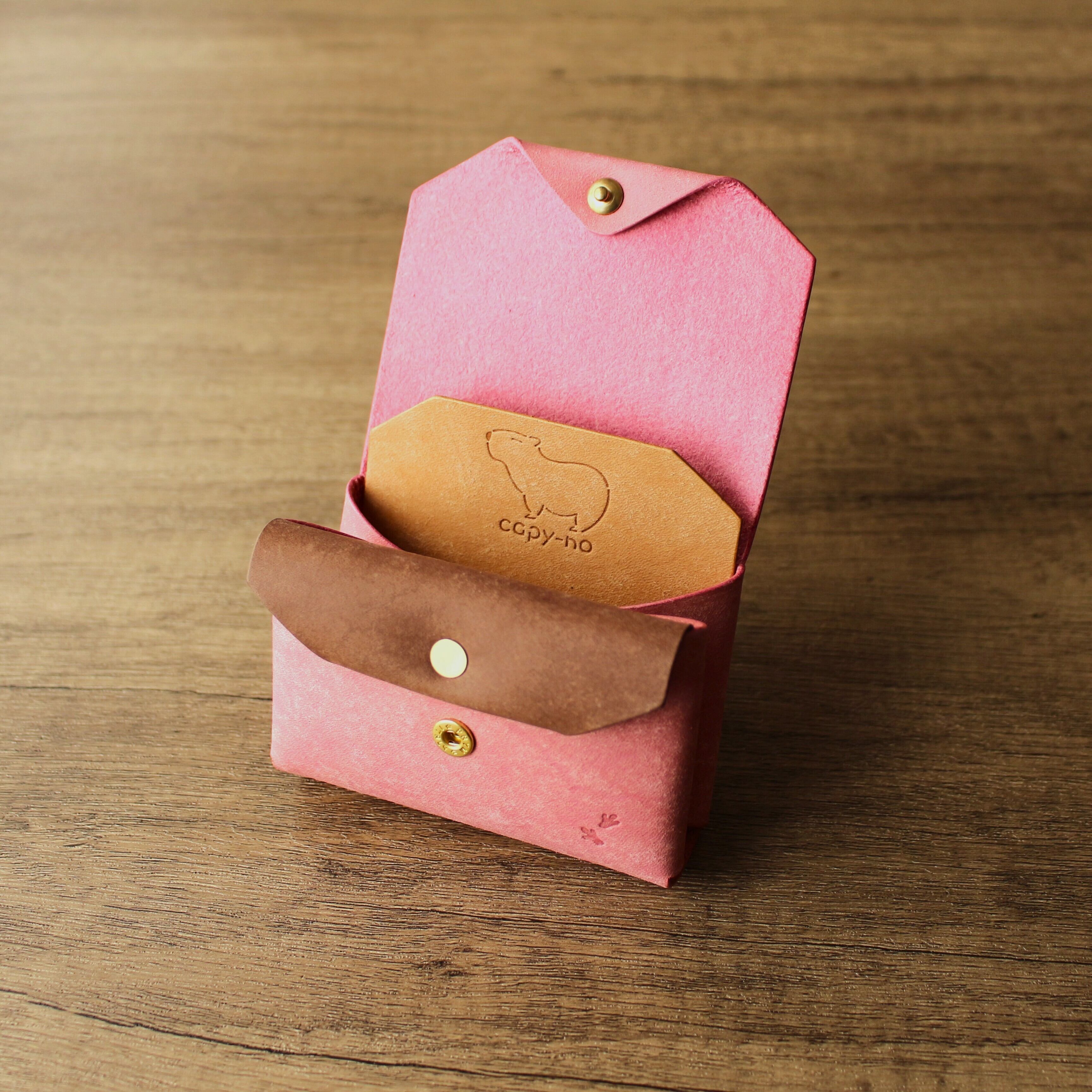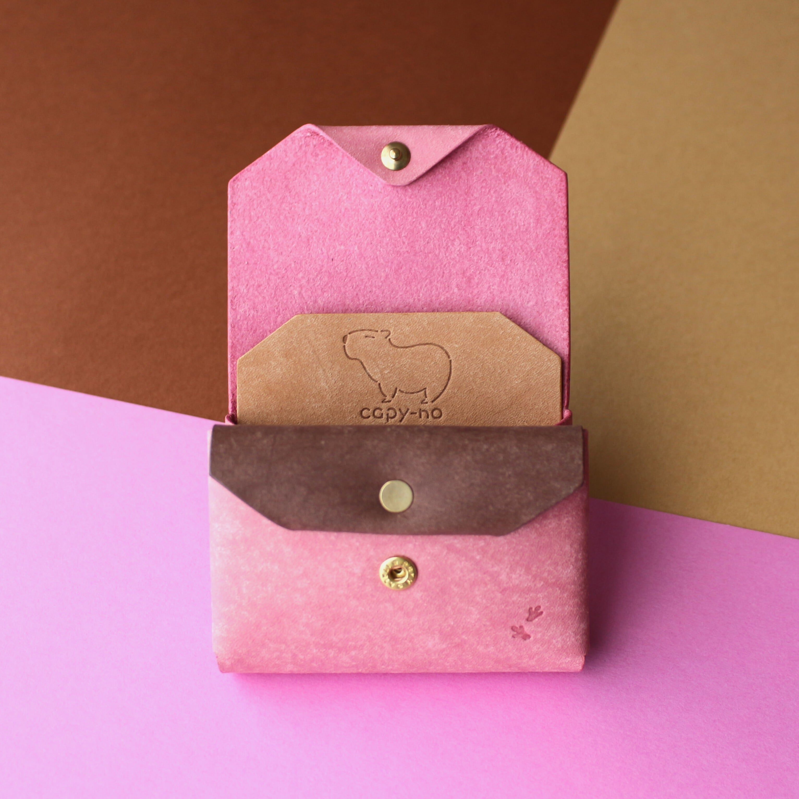 お札を折らないカピバラのコンパクト財布 ピンク×ダークブラウン×ブラウン