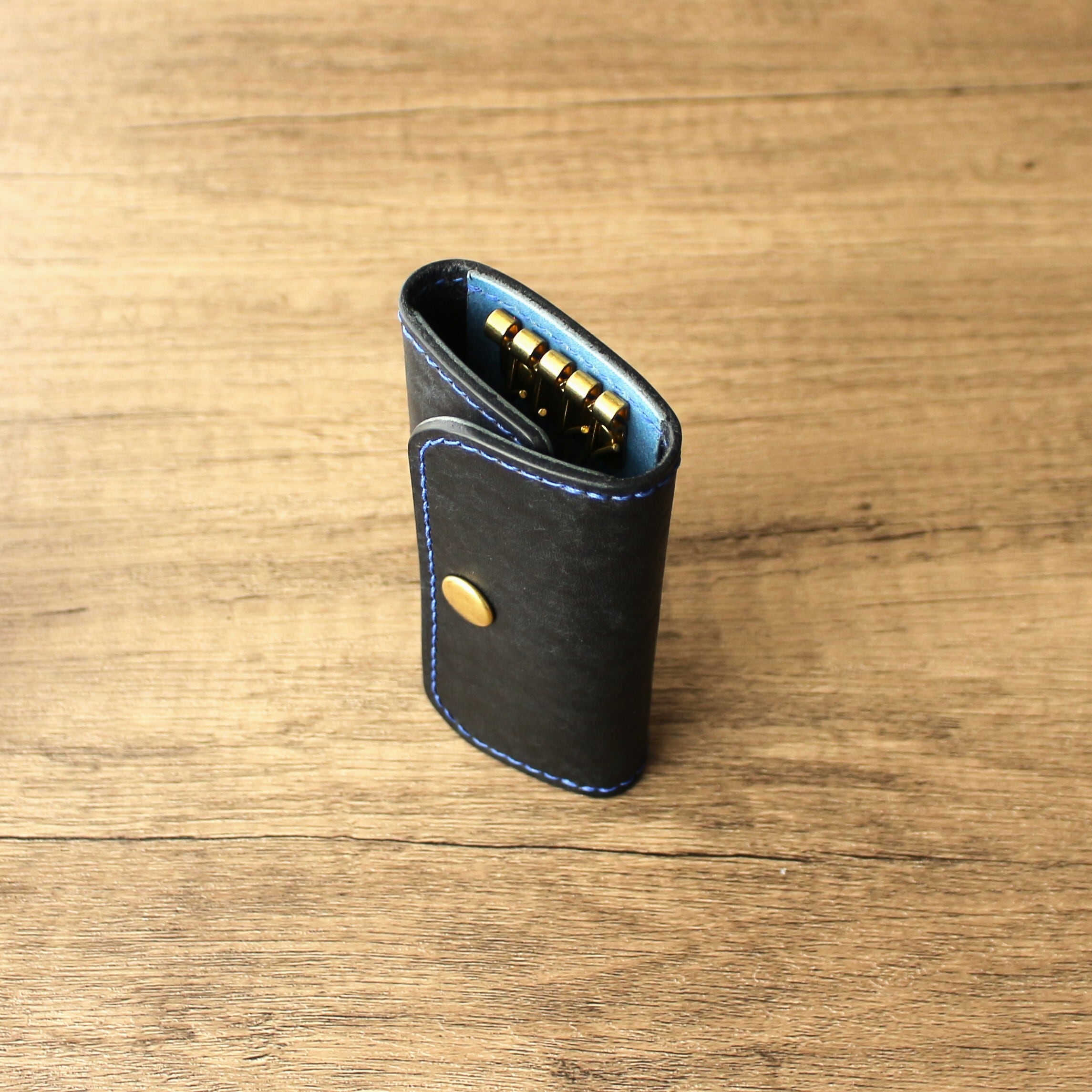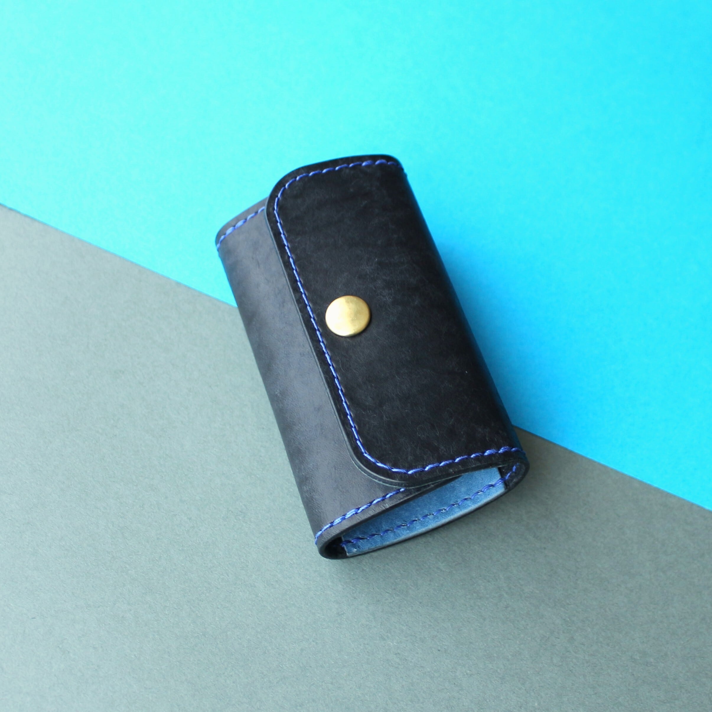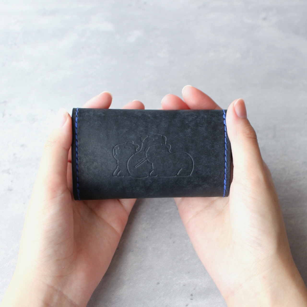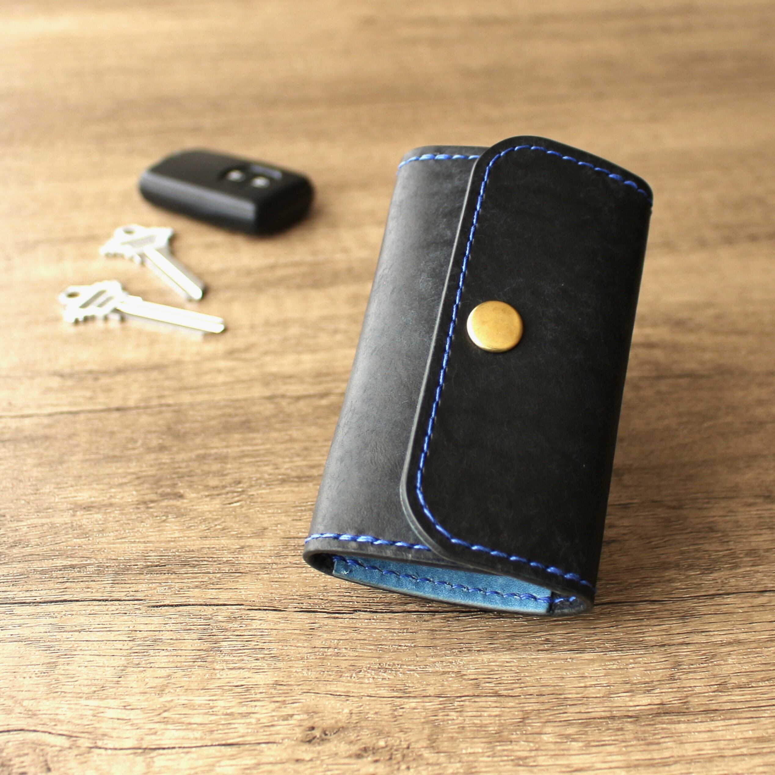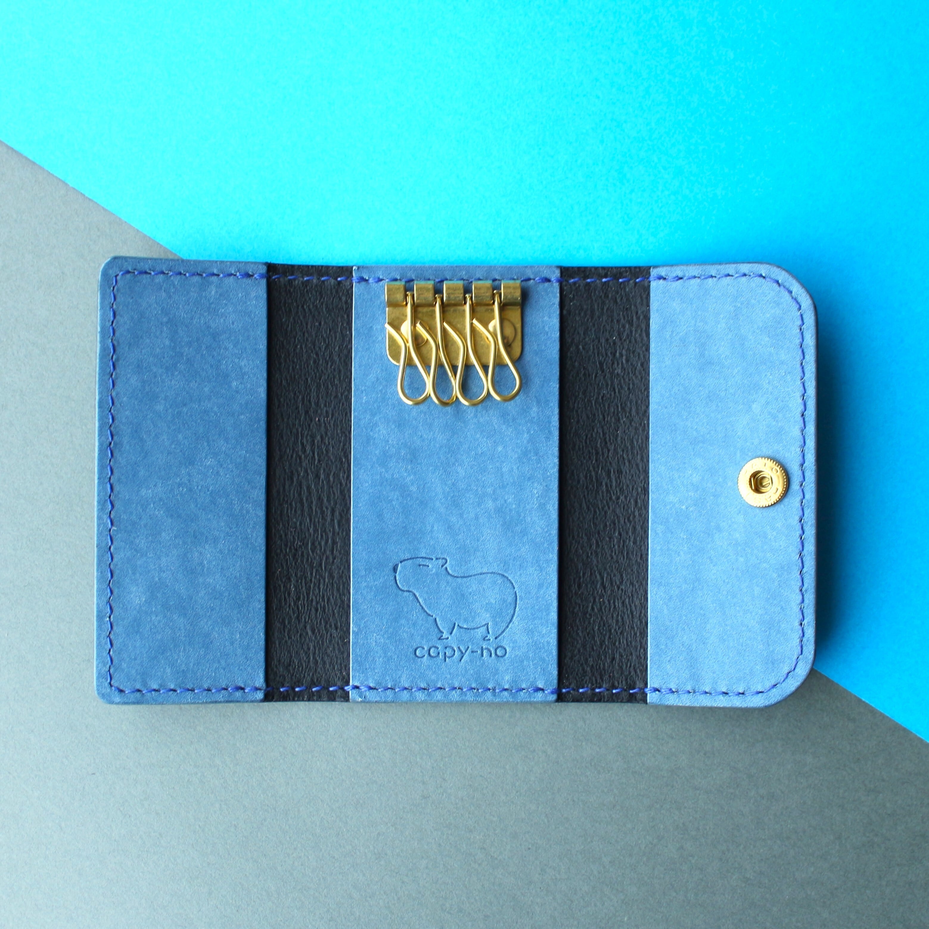 カードも入るカピバラの4連キーケース ブラック×ブルー