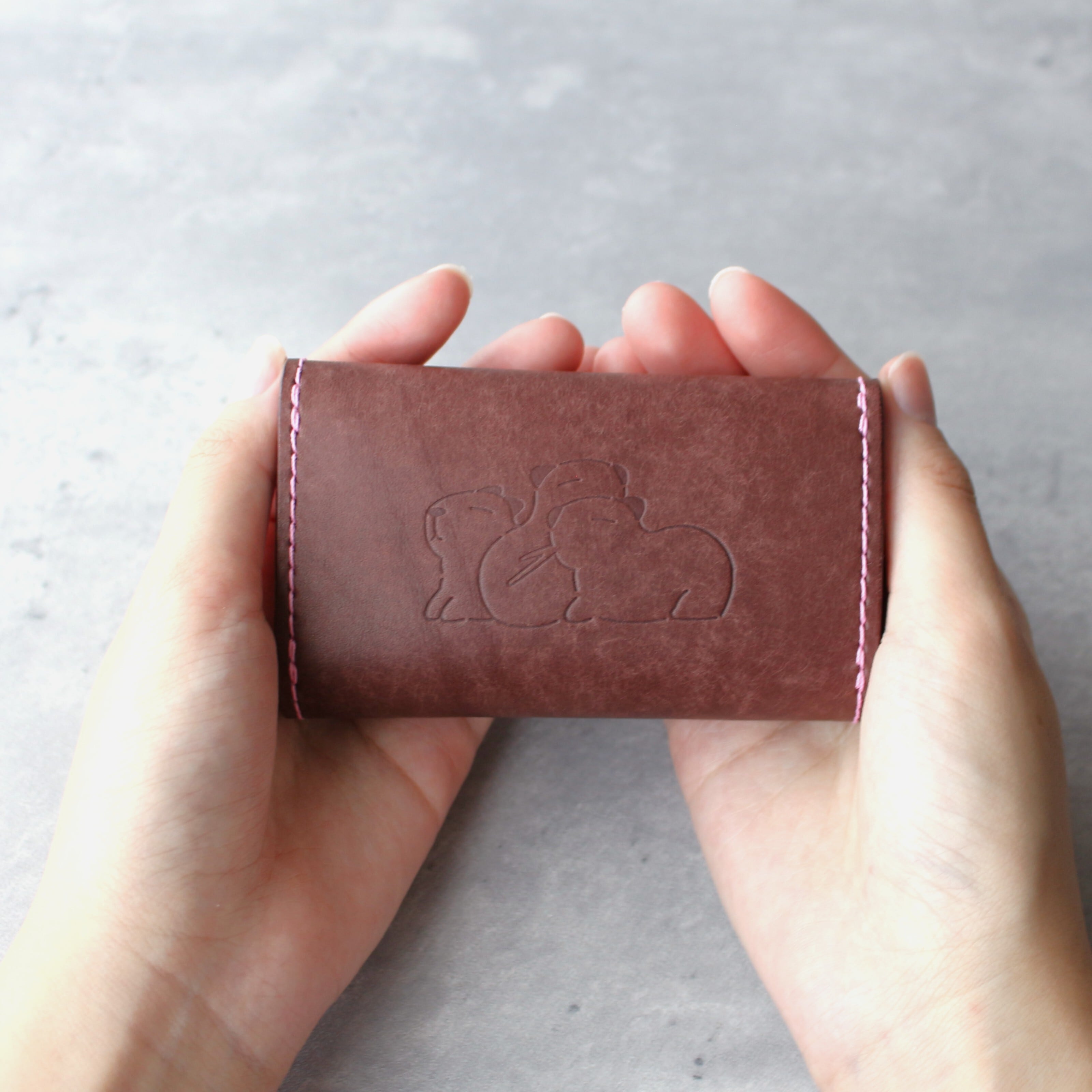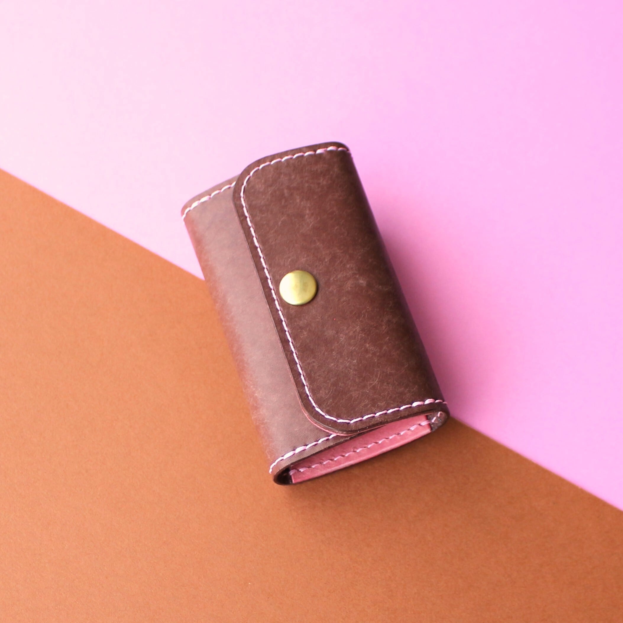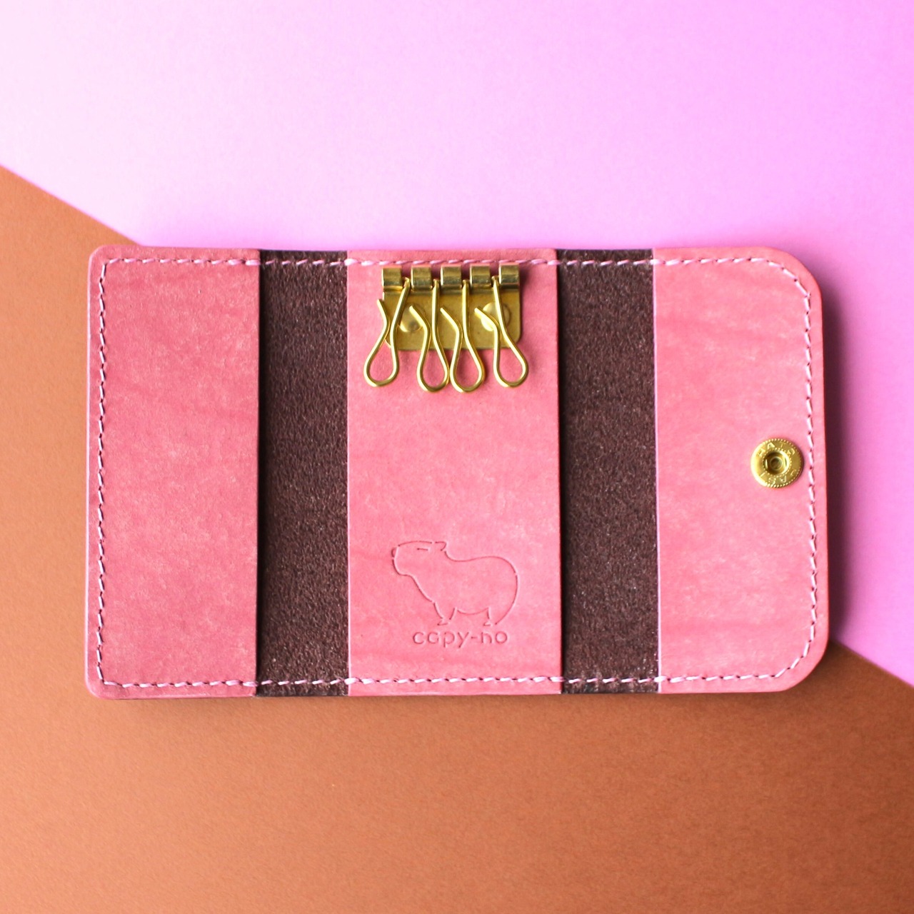 カードも入るカピバラの4連キーケース ダークブラウン×ピンク