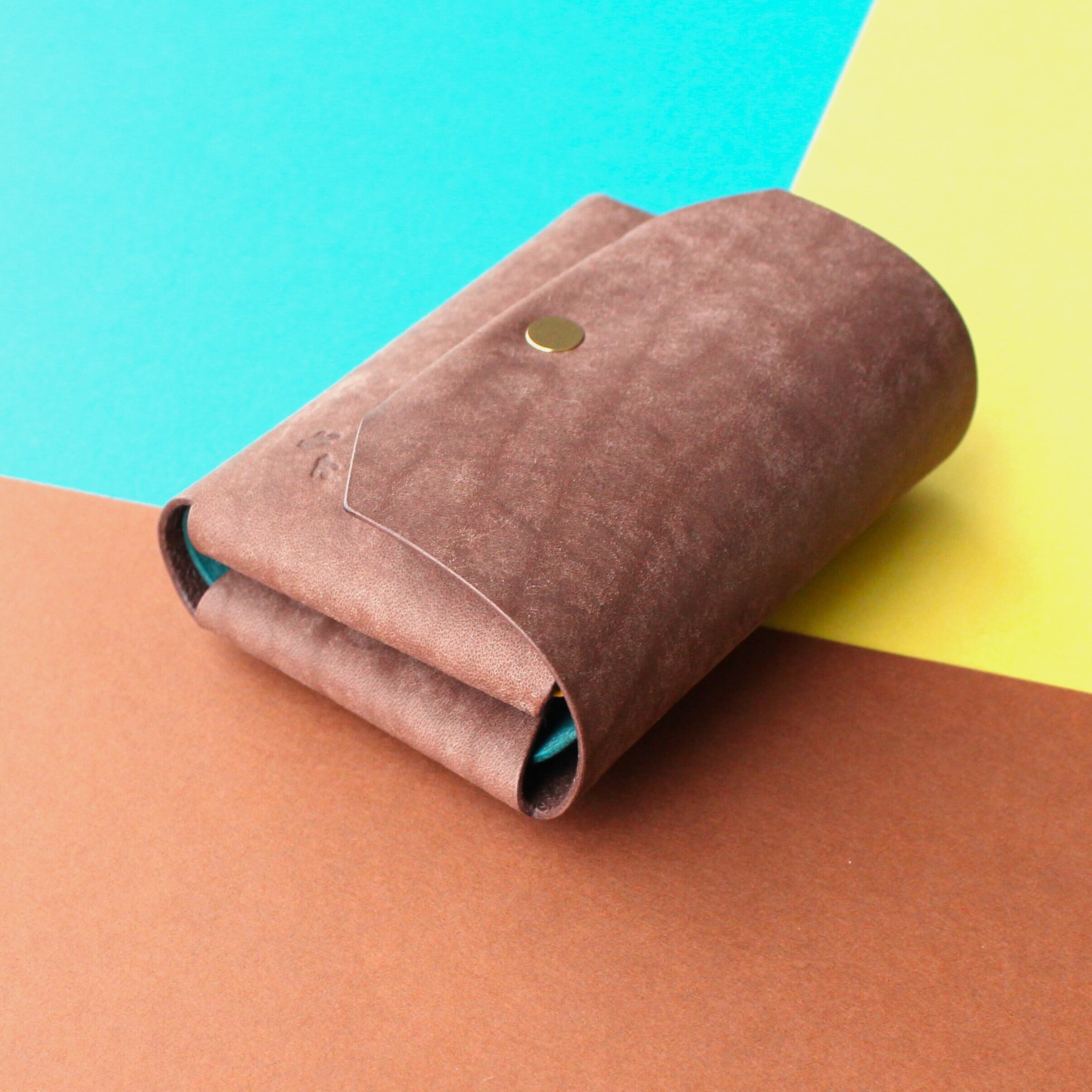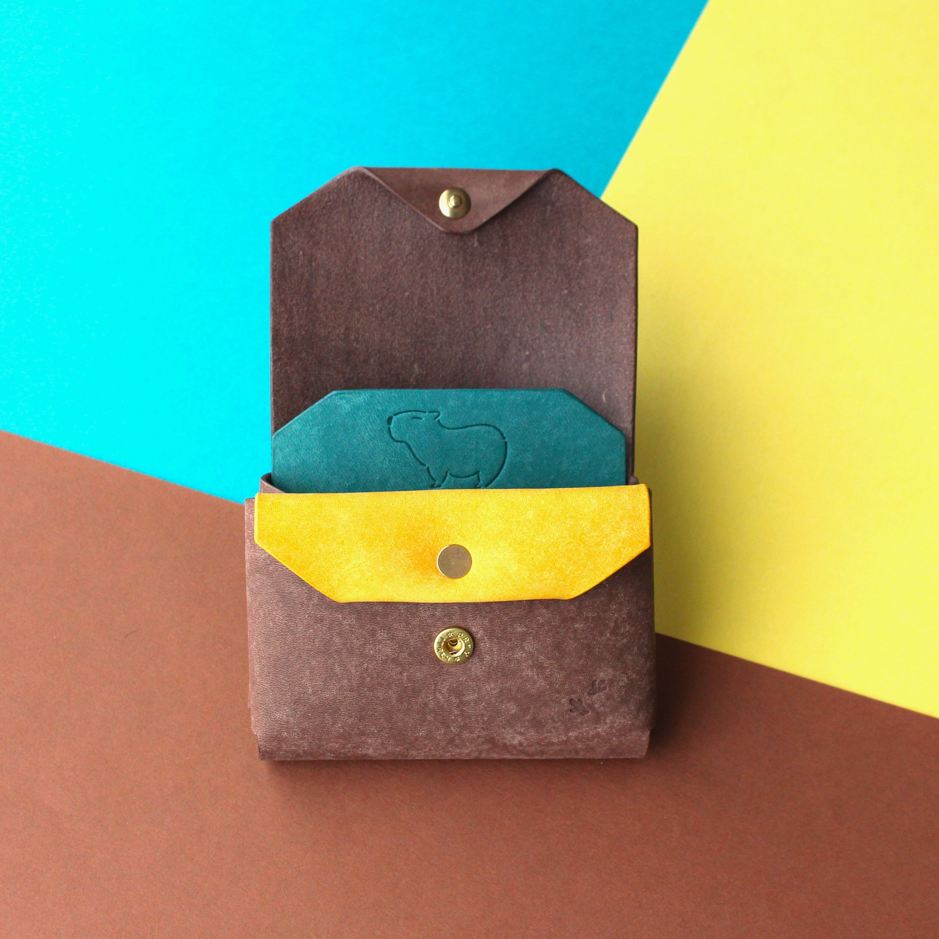 お札を折らないカピバラのコンパクト財布 ダークブラウン×ターコイズ×イエロー