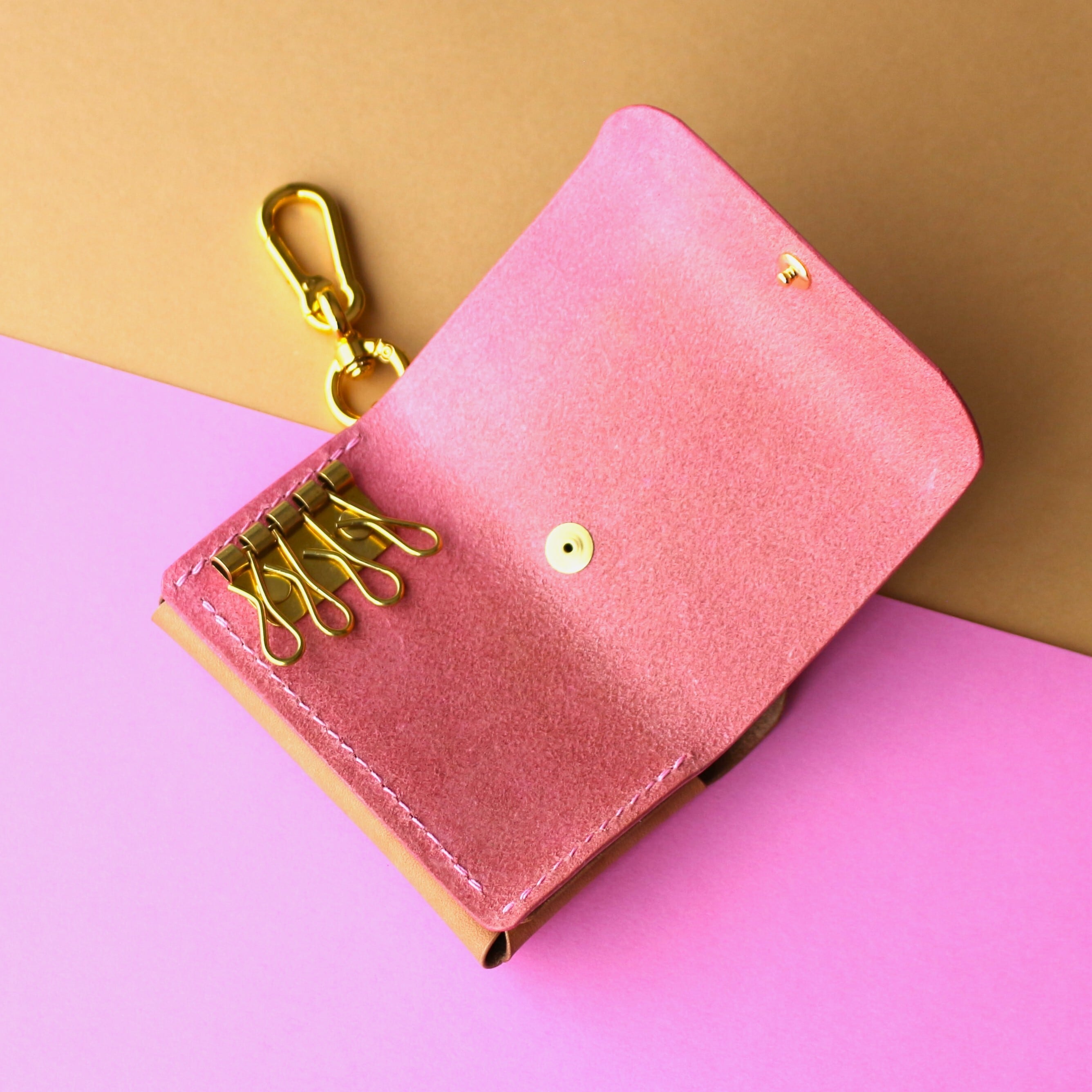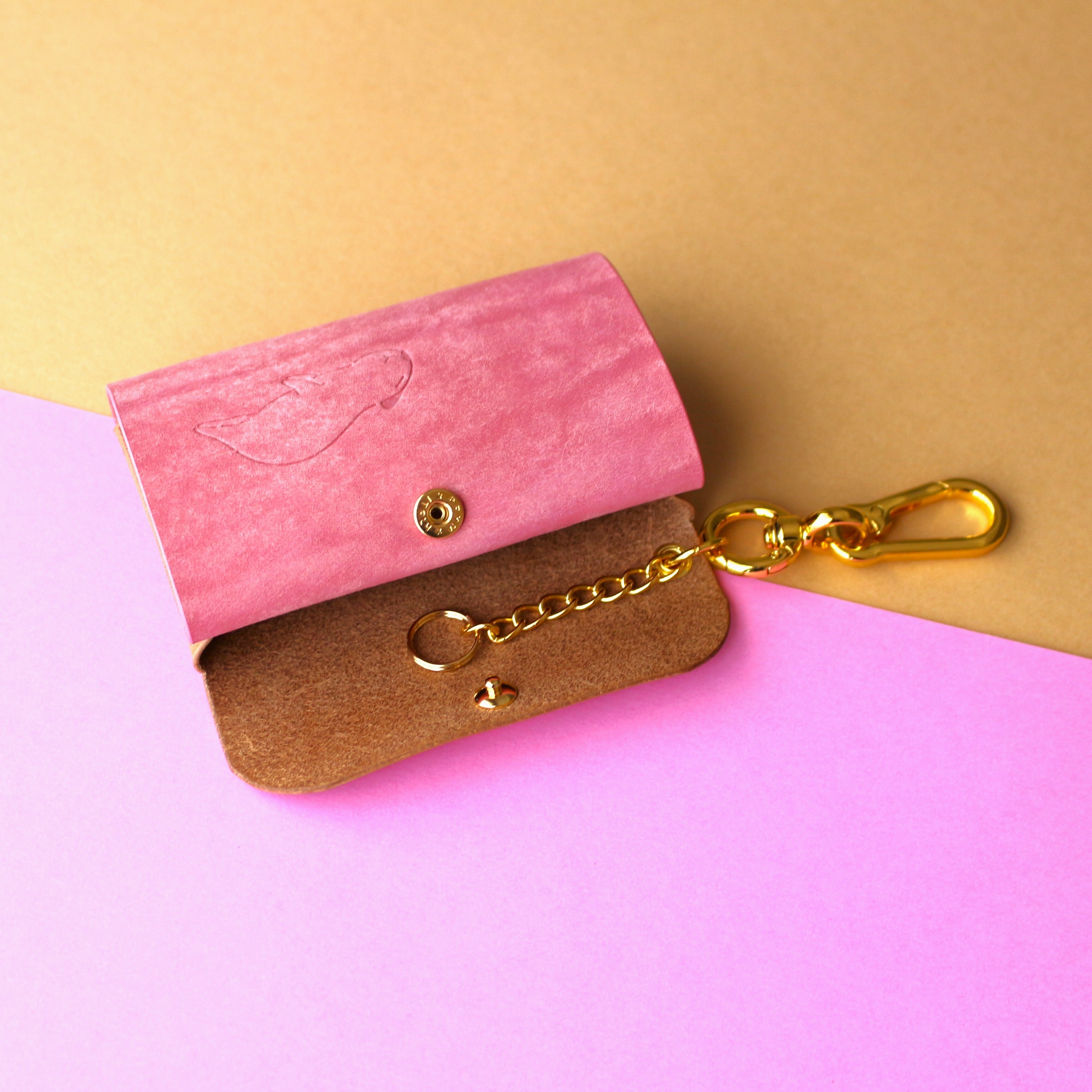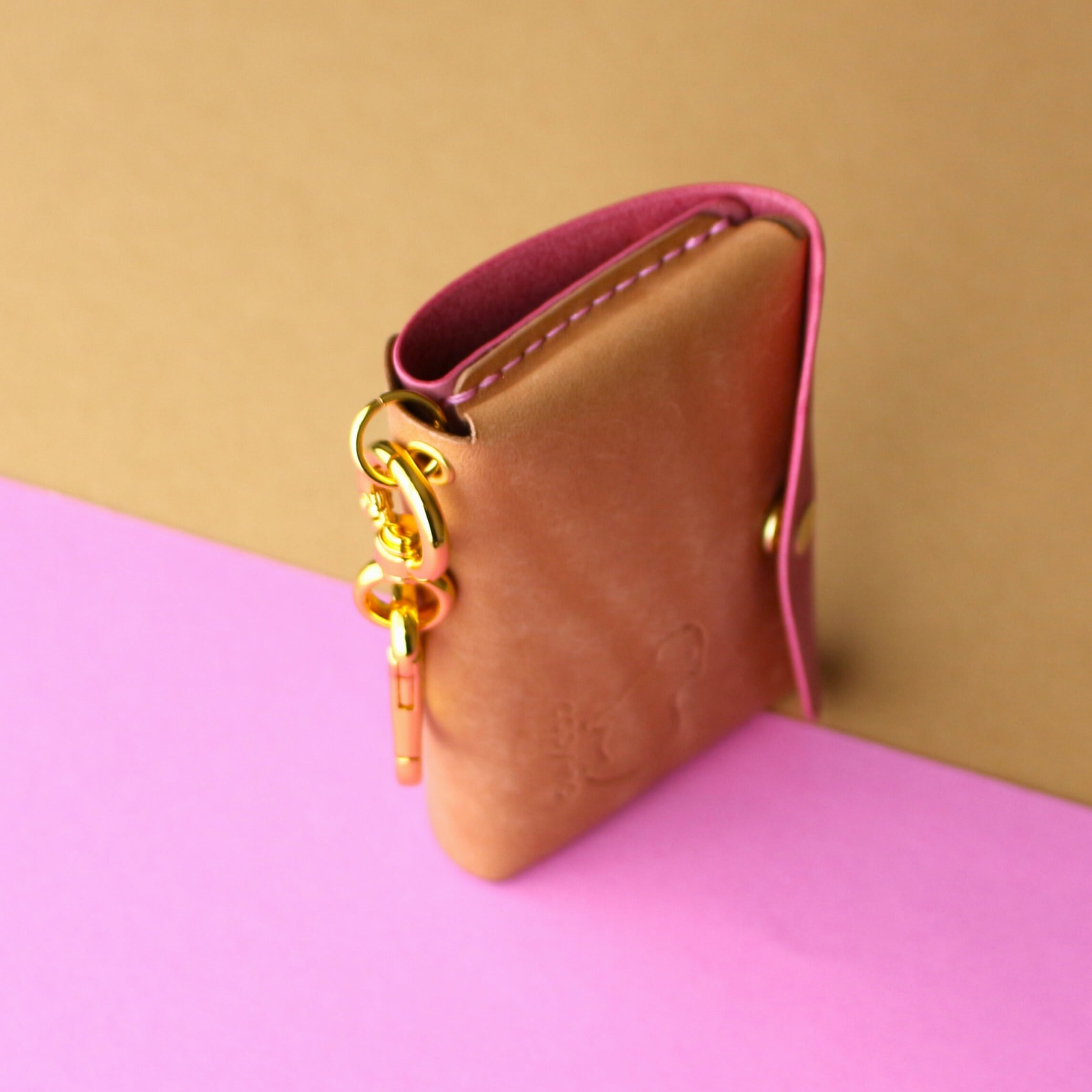 かわいいカピバラと一緒におでかけするスマートキーケース ピンク×ブラウン
