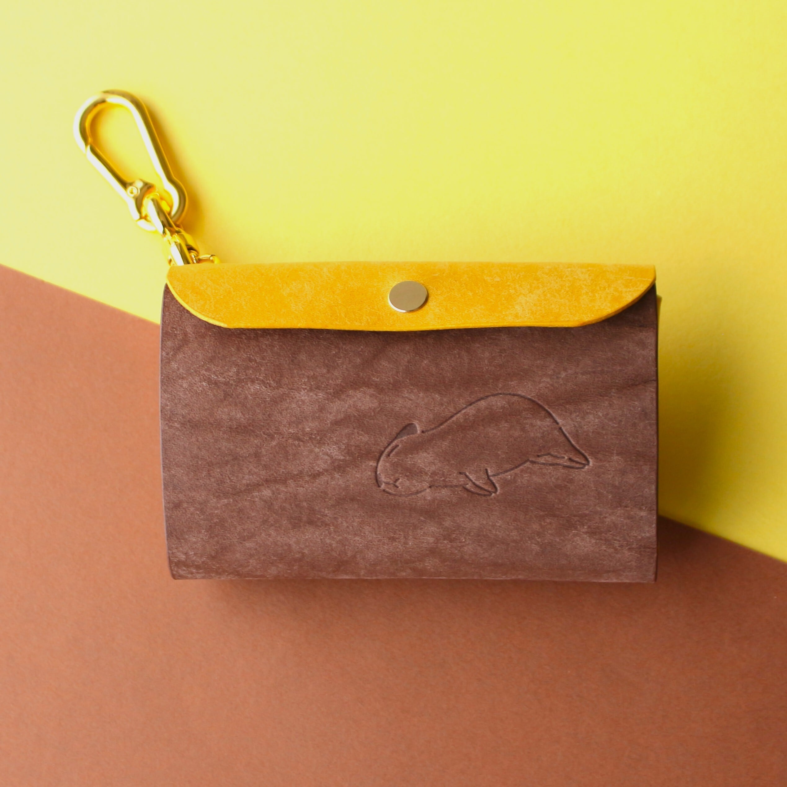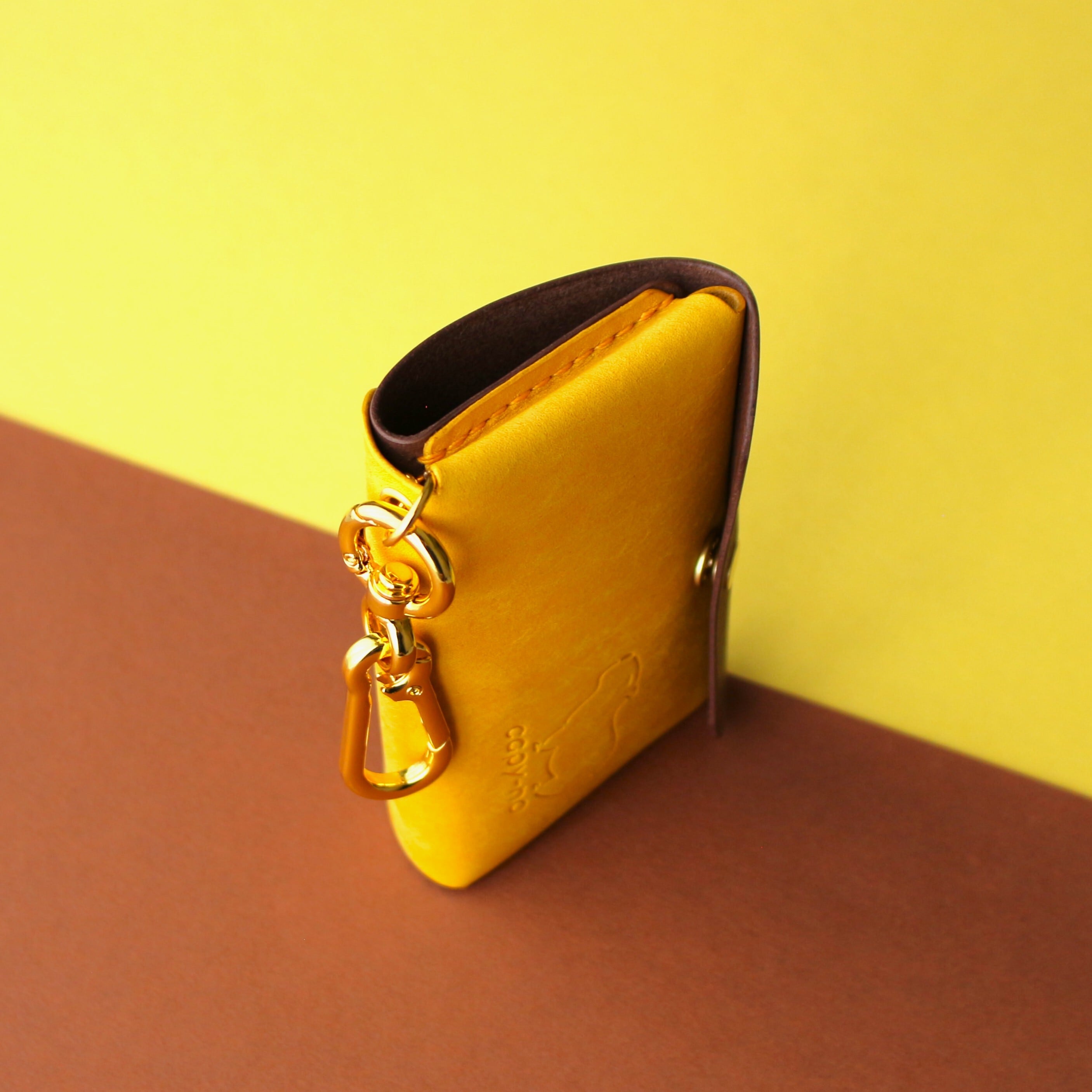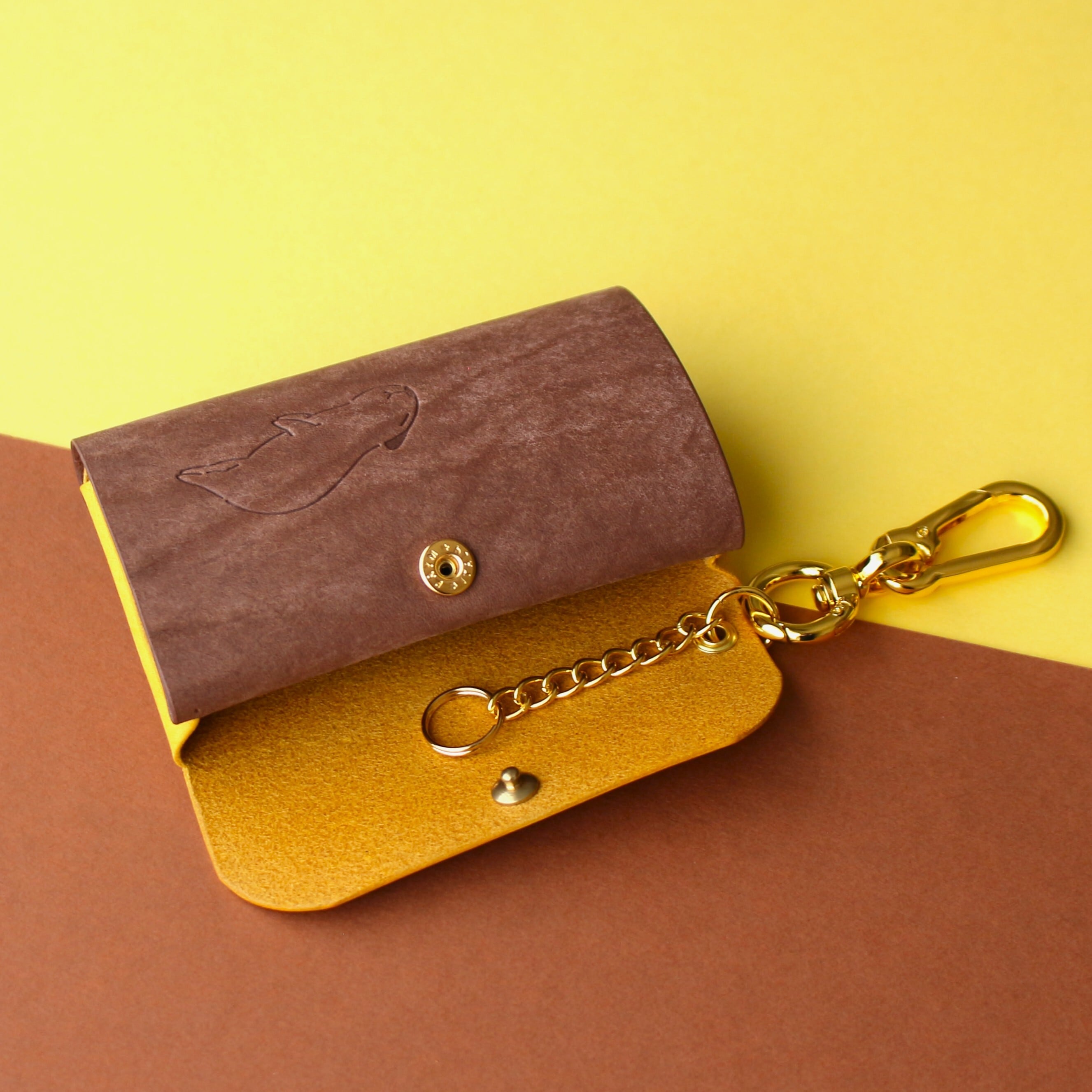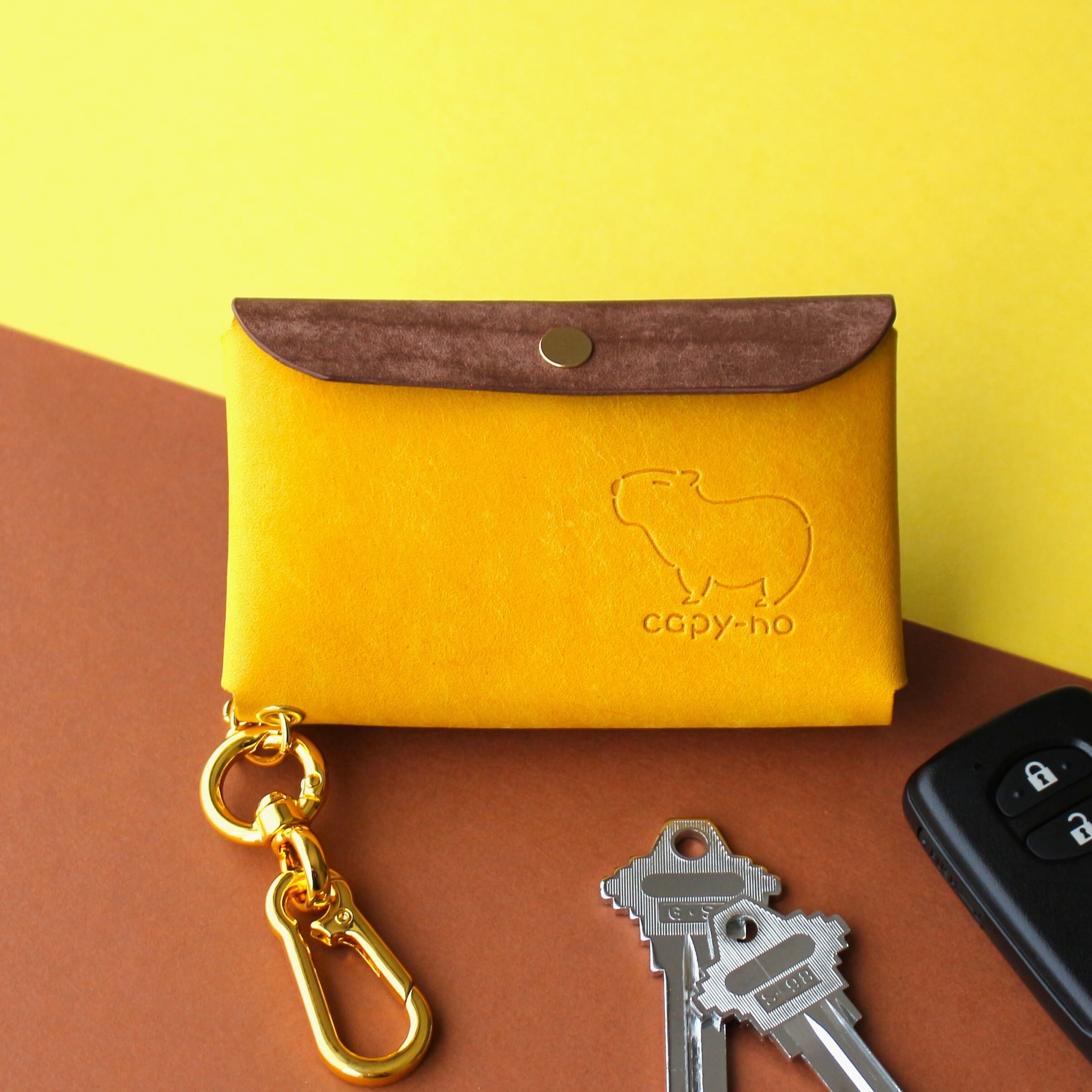 かわいいカピバラと一緒におでかけするスマートキーケース ダークブラウン×イエロー