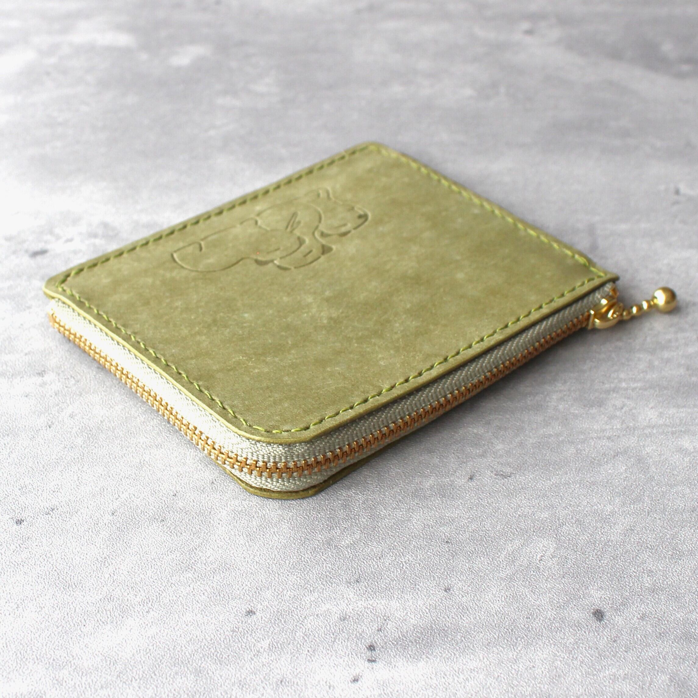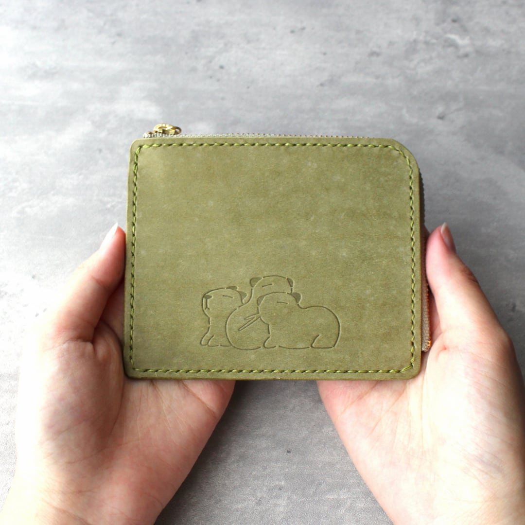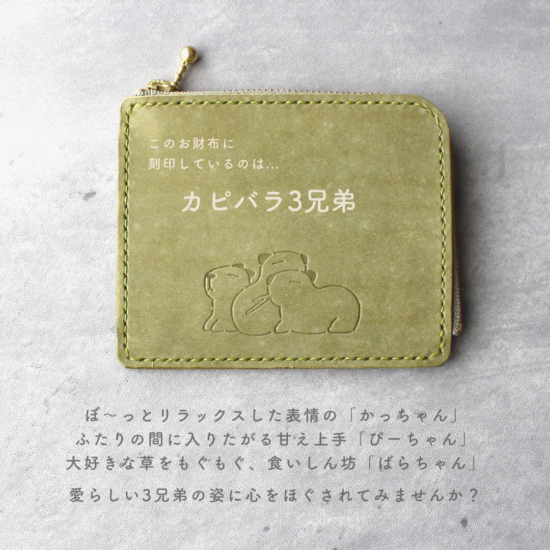 カピバラのL字ファスナースリム財布 グリーン×ブラウン