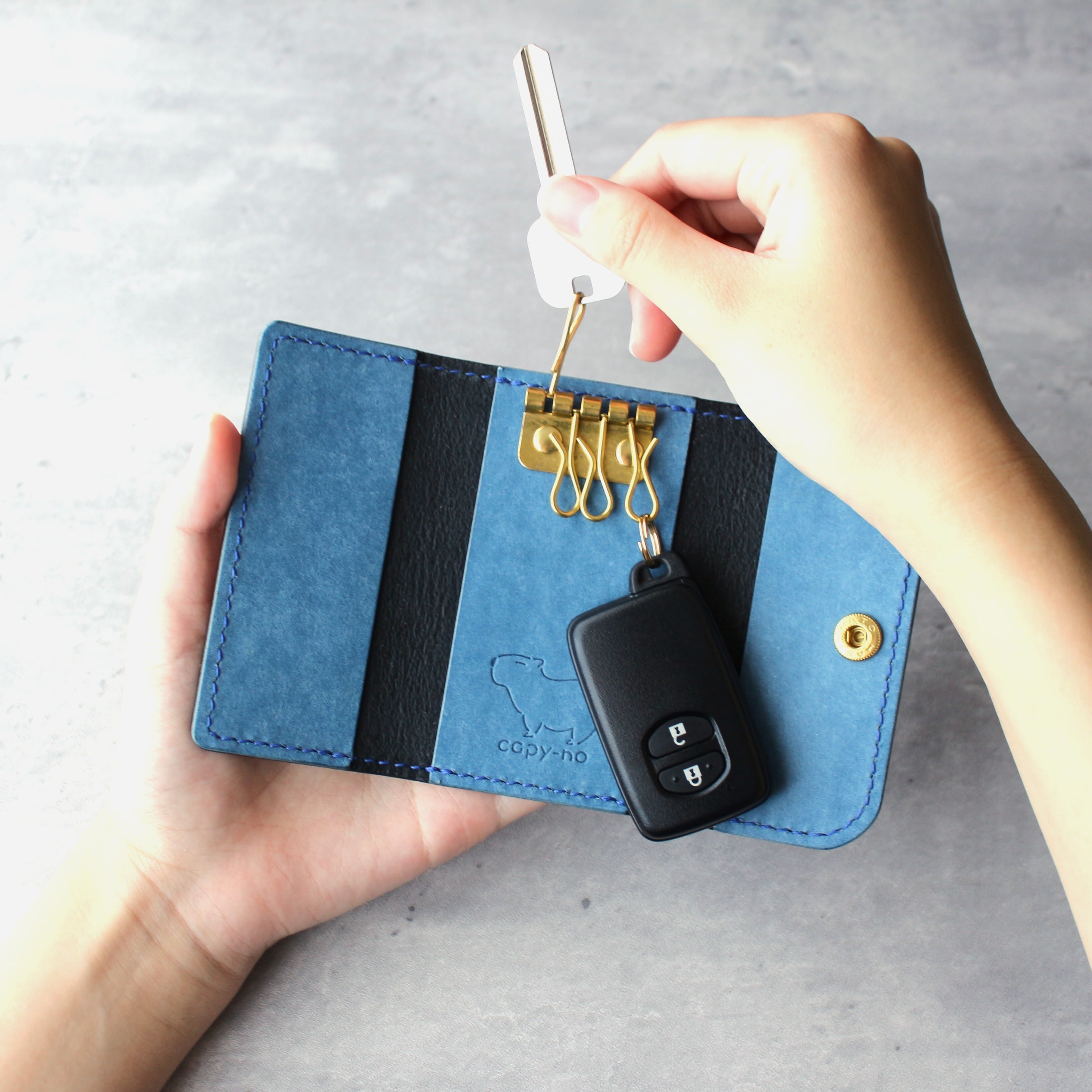 Capy-noの革小物が使いやすいか、製作者(右利き)が実際に使用して確認しております。